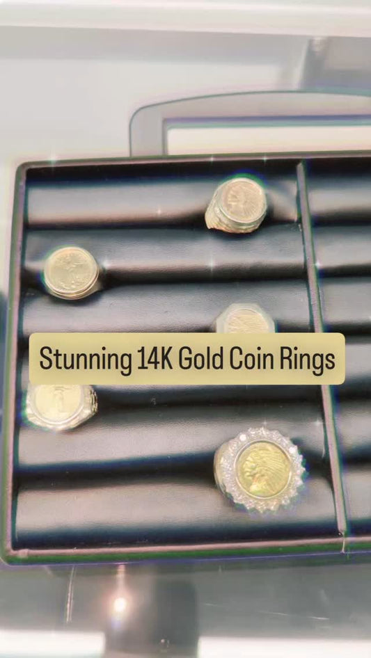 Diamond Fancy Solid Gold Handmade Coin Ring , Indian Head Coin ,