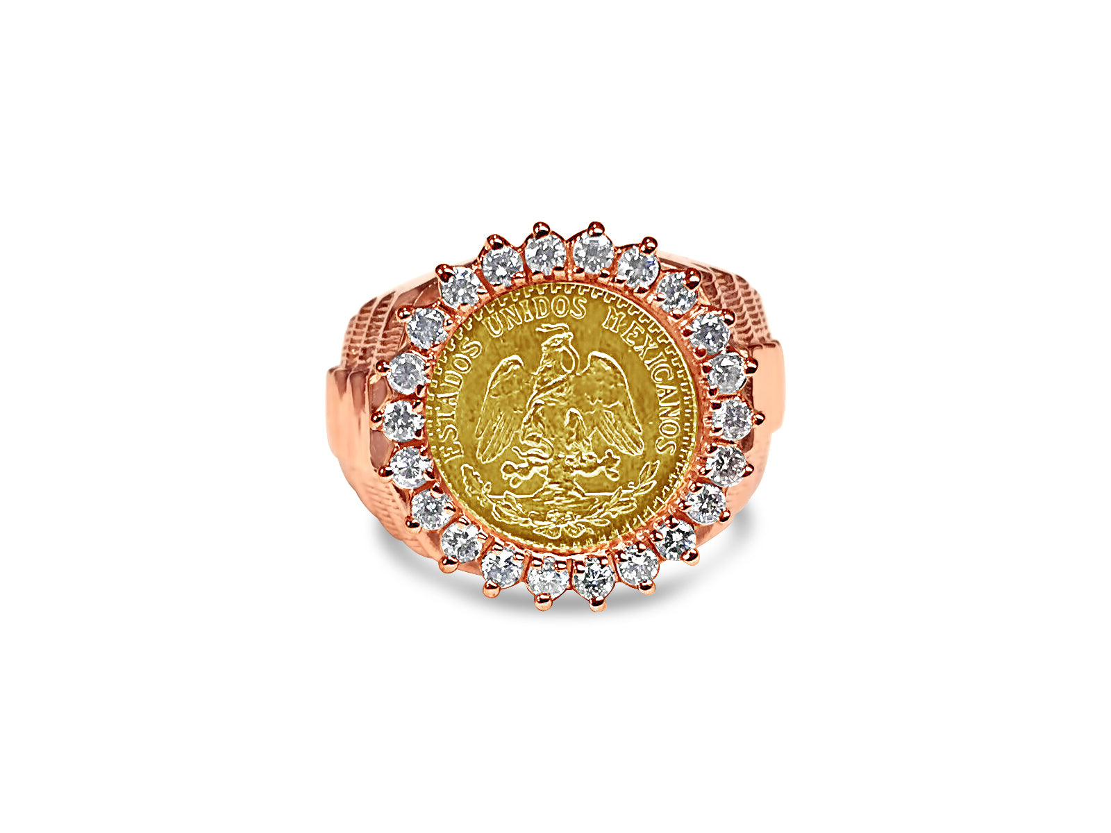 Title: Diamond Fancy Solid White/Yellow/Rose Gold Handmade Coin Ring,