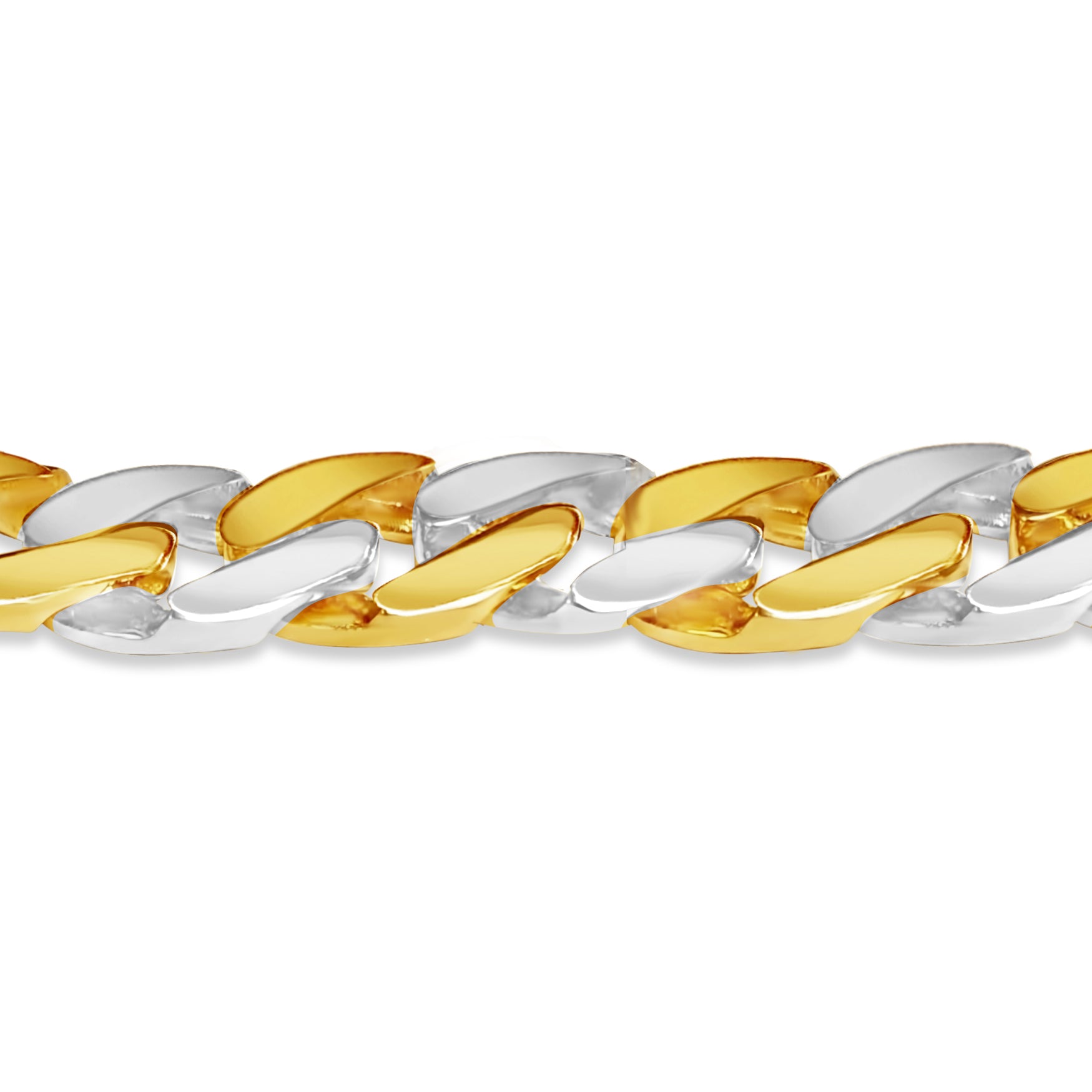 Crafted with precision by our seasoned artisans, each link of this bracelet tells a story of heritage and tradition. Available in 10K, 14K, or 18K gold, with a dimension of 16mm, it strikes the perfect balance between boldness and refinement. Choose from multiple gold colors such as; Yellow, White, Rose, Two-Tone, or Tri-Color to suit your style.