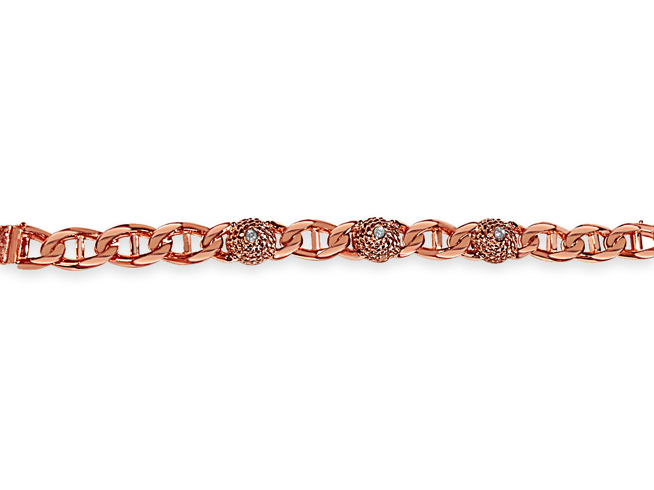 Title: Diamond Mariner Solid White/Yellow/Rose Gold Handmade Bracelet, 17mm, 6.5-10 Inch