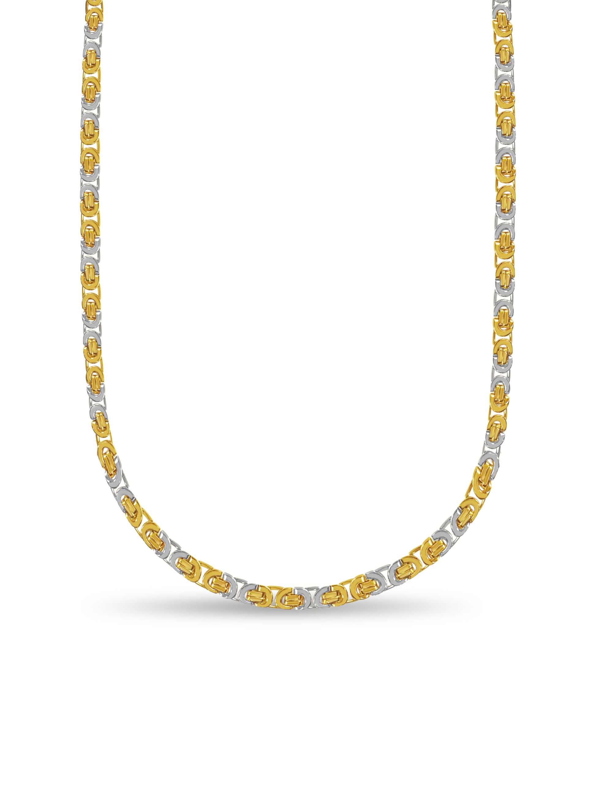 Title: Flat Byzantine Solid White/Yellow/Rose Gold Handmade Necklace, 11mm, 16-30 Inch