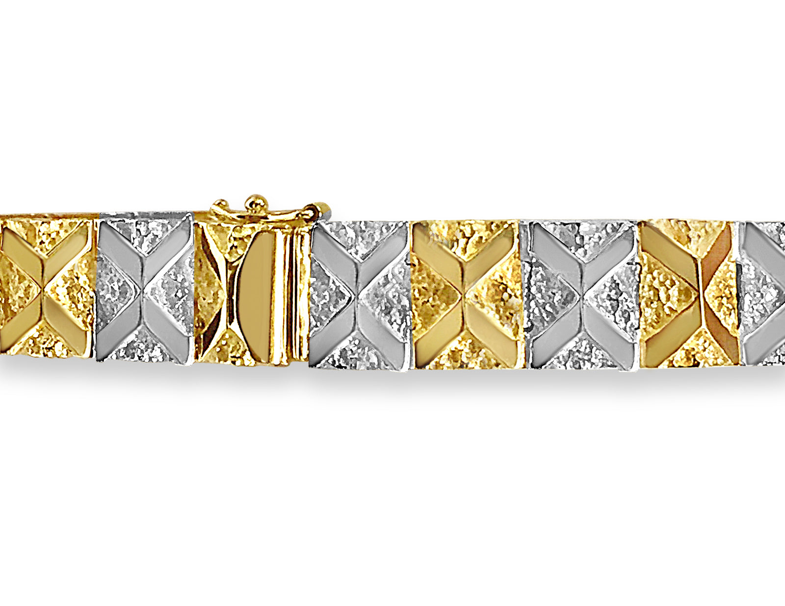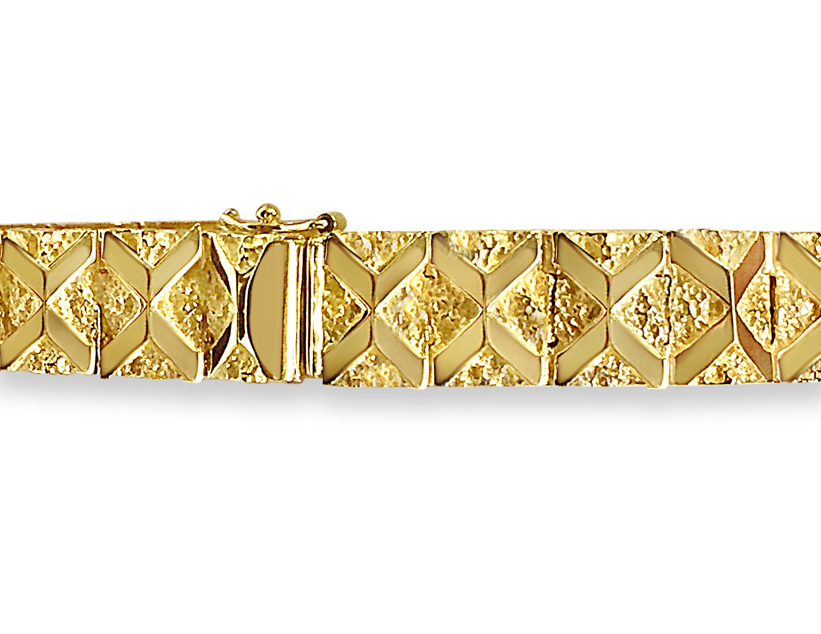 Crafted with precision by our seasoned artisans, each link of this bracelet tells a story of heritage and tradition. Available in 10K, 14K, or 18K gold, with a dimension of 11mm, it strikes the perfect balance between boldness and refinement. Choose from multiple gold colors such as; Yellow, White, Rose, Two-Tone, or Tri-Color to suit your style.