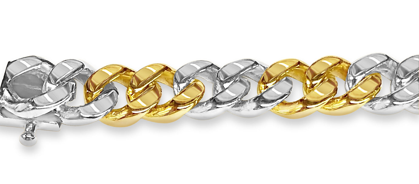 Crafted with precision by our seasoned artisans, each link of this bracelet tells a story of heritage and tradition. Available in 10K, 14K, or 18K gold, with a dimension of 8mm, it strikes the perfect balance between boldness and refinement. Choose from multiple gold colors such as; Yellow, White, Rose, Two-Tone, or Tri-Color to suit your style.