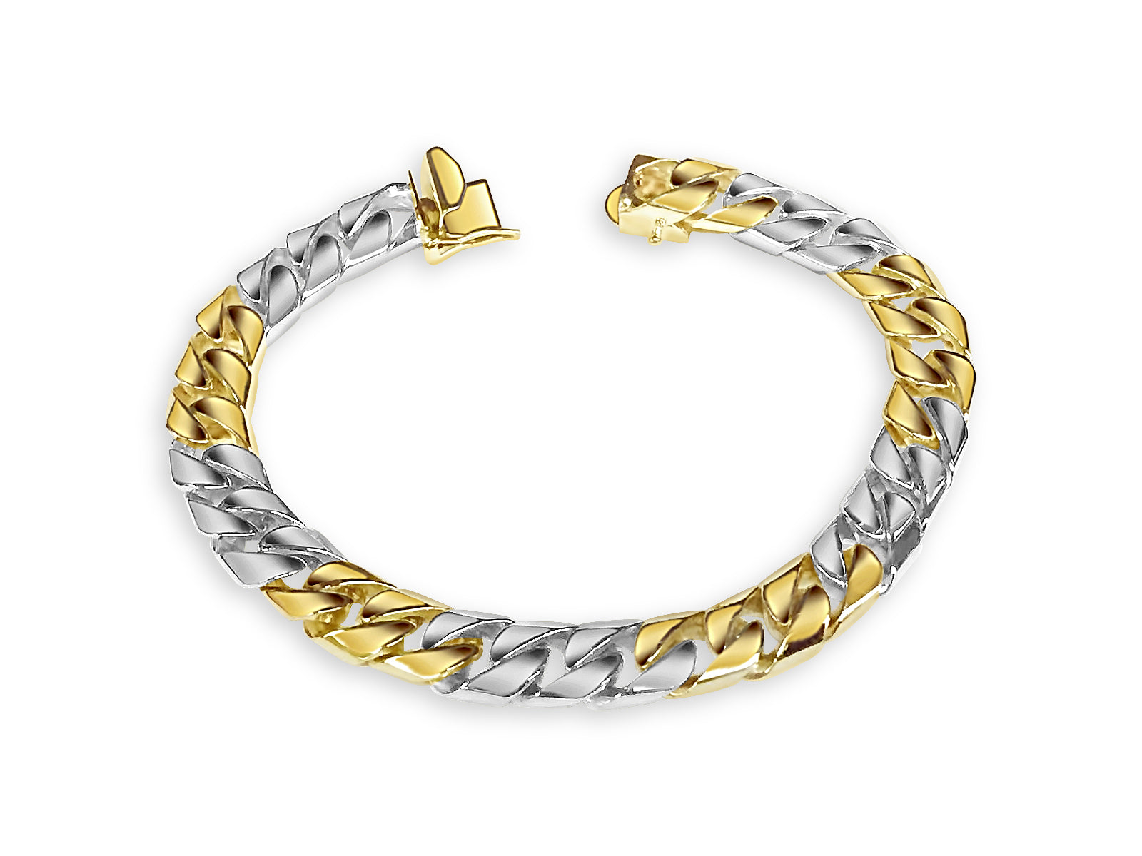 Crafted with precision by our seasoned artisans, each link of this bracelet tells a story of heritage and tradition. Available in 10K, 14K, or 18K gold, with a dimension of 9mm, it strikes the perfect balance between boldness and refinement. Choose from multiple gold colors such as; Yellow, White, Rose, Two-Tone, or Tri-Color to suit your style.