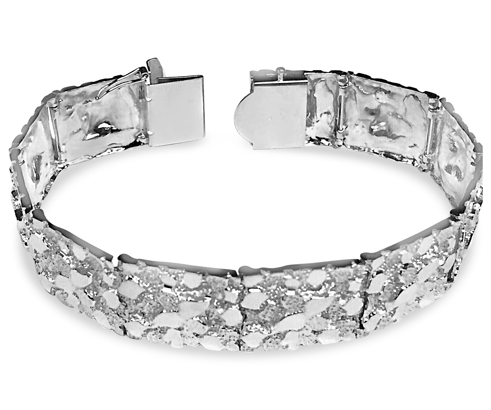 Nugget Solid Gold Handmade Bracelet , 17mm, 6.5-10 Inch