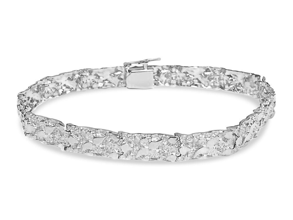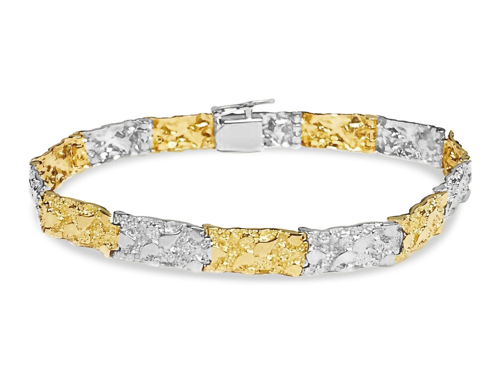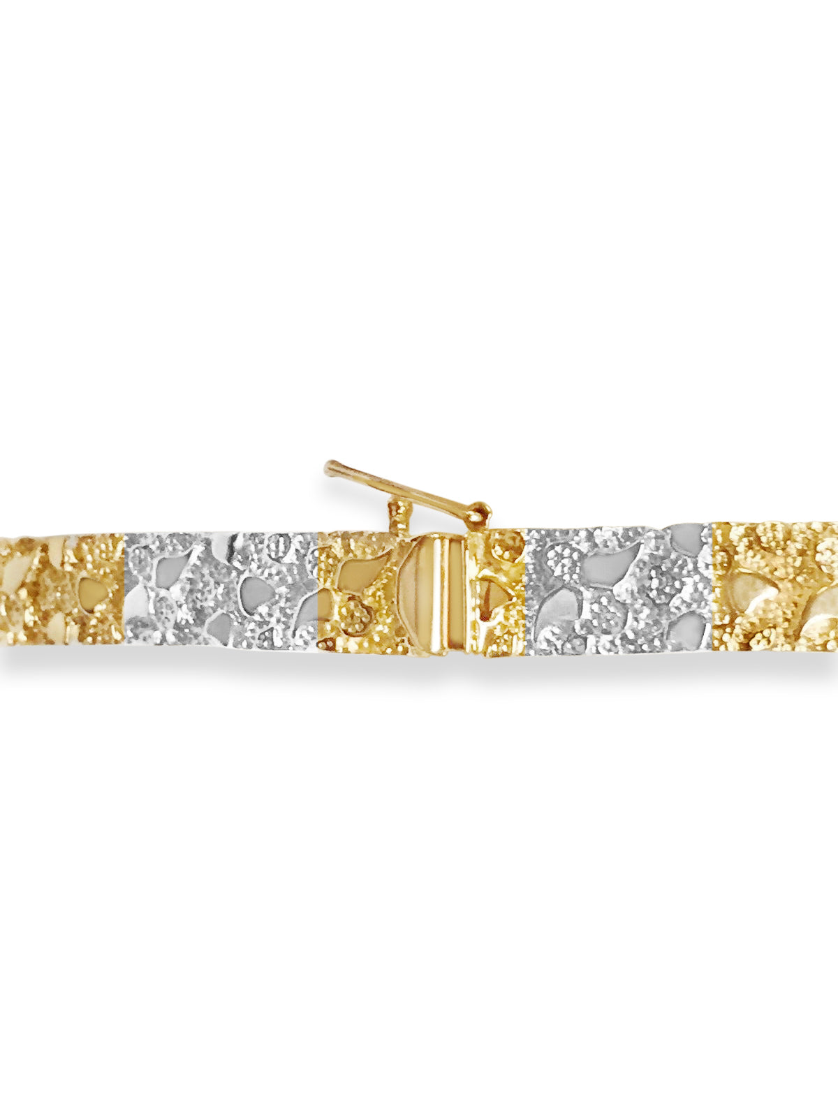 Title: Nugget Solid White/Yellow/Rose Gold Handmade Bracelet, 7mm, 6.5-10 Inch
