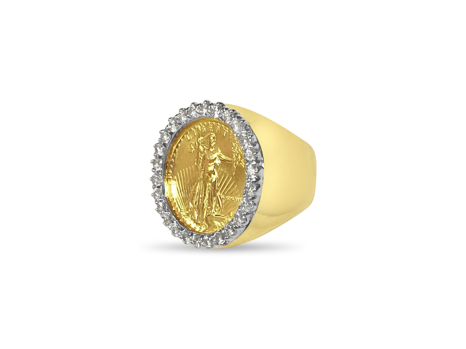 Title: Diamond Fancy Solid White/Yellow/Rose Gold Handmade Coin Ring,