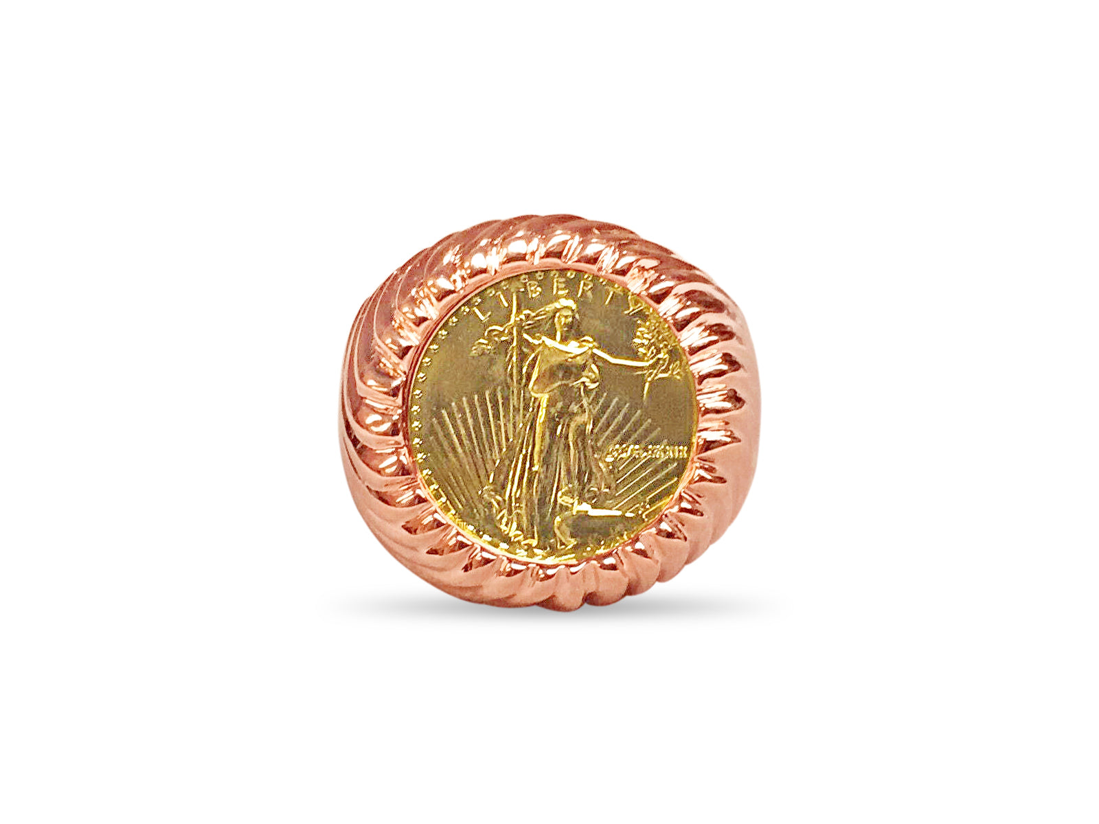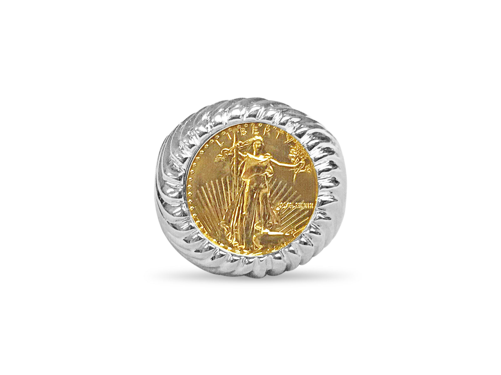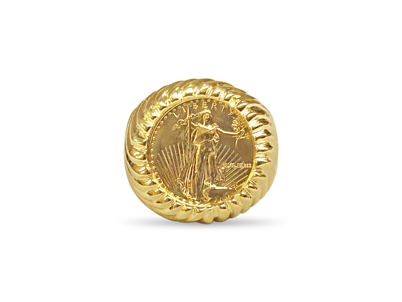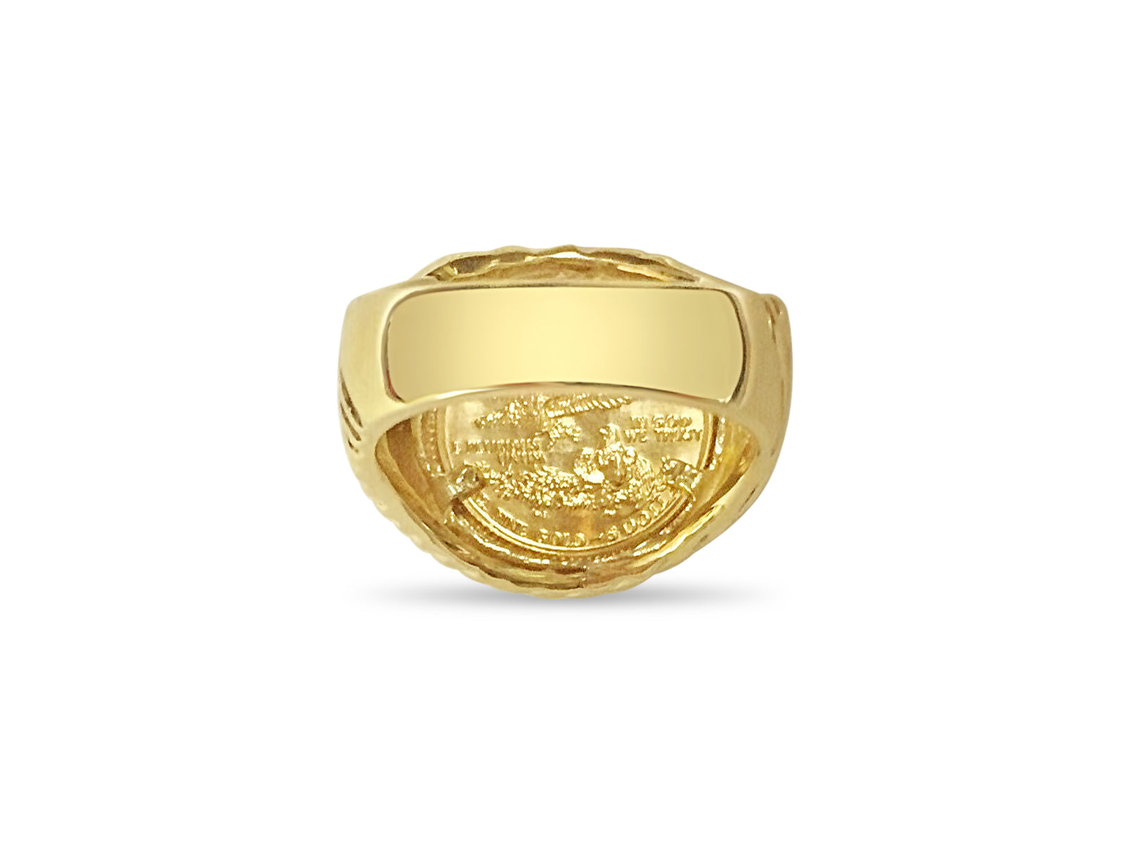 Fancy Solid Gold Handmade Coin Ring , 1/10oz Coin ,