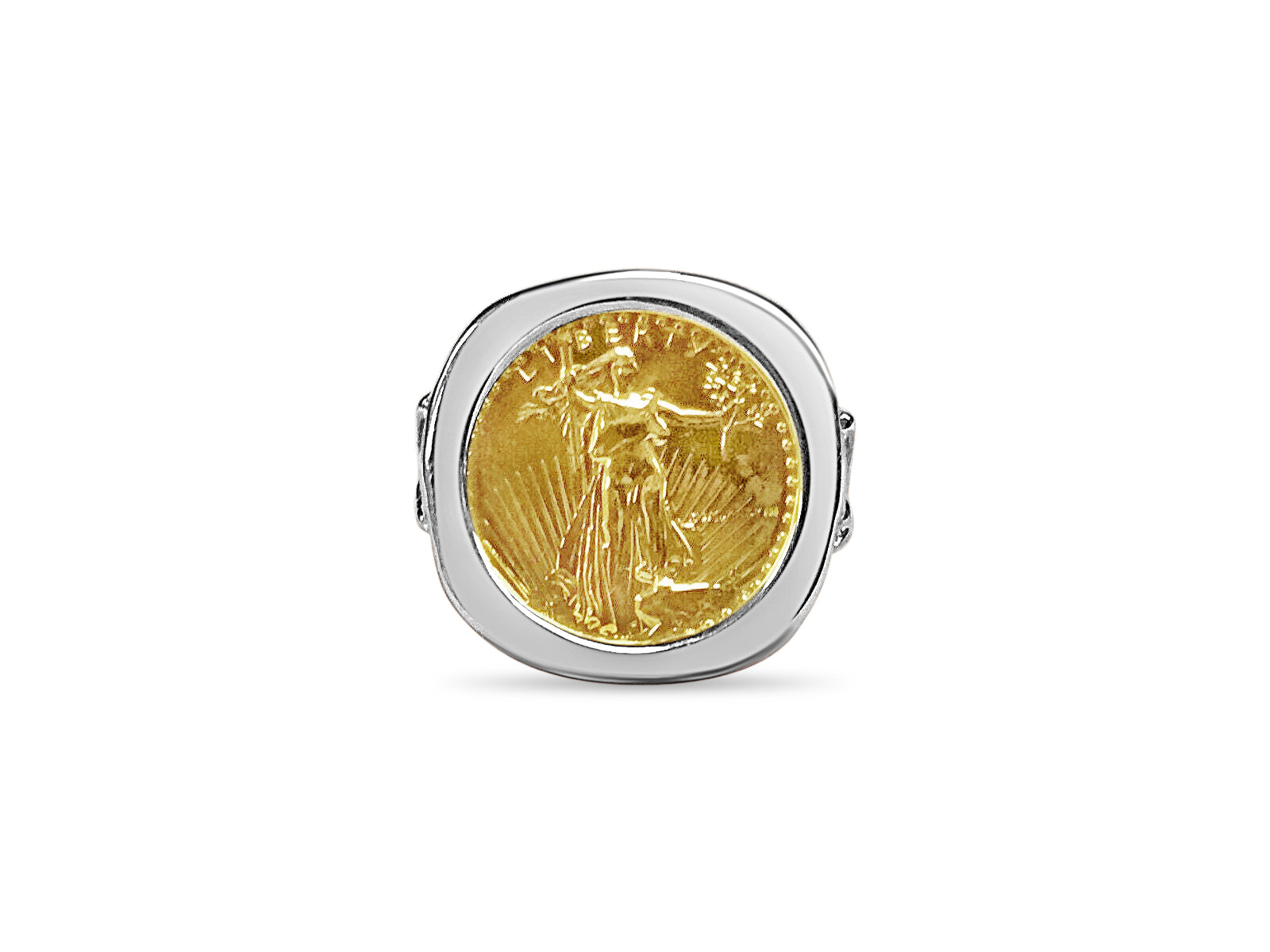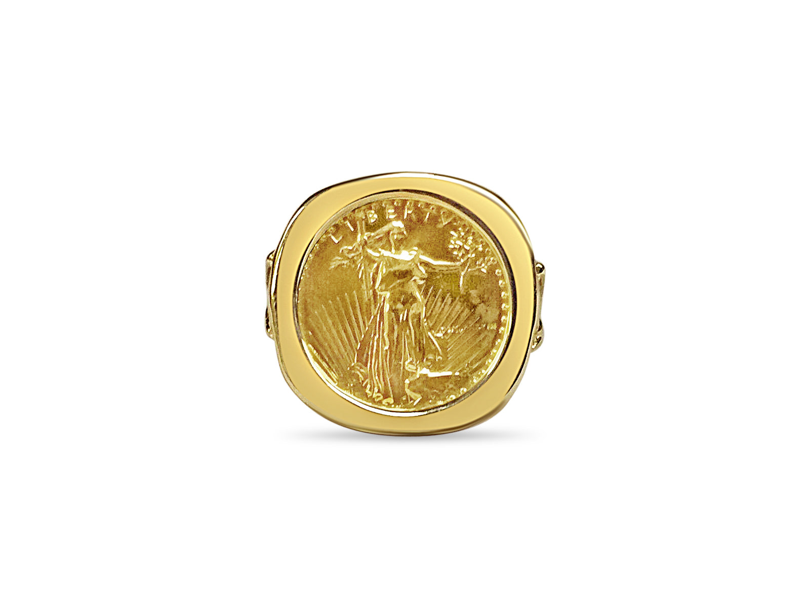 Fancy Solid Gold Handmade Coin Ring , 1/10oz Coin ,