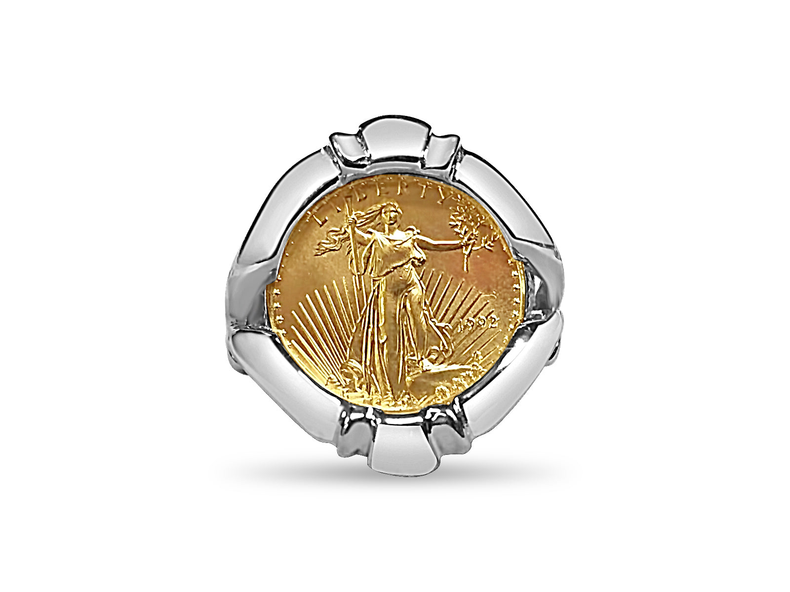 Title: Fancy Solid White/Yellow/Rose Gold Handmade Coin Ring,