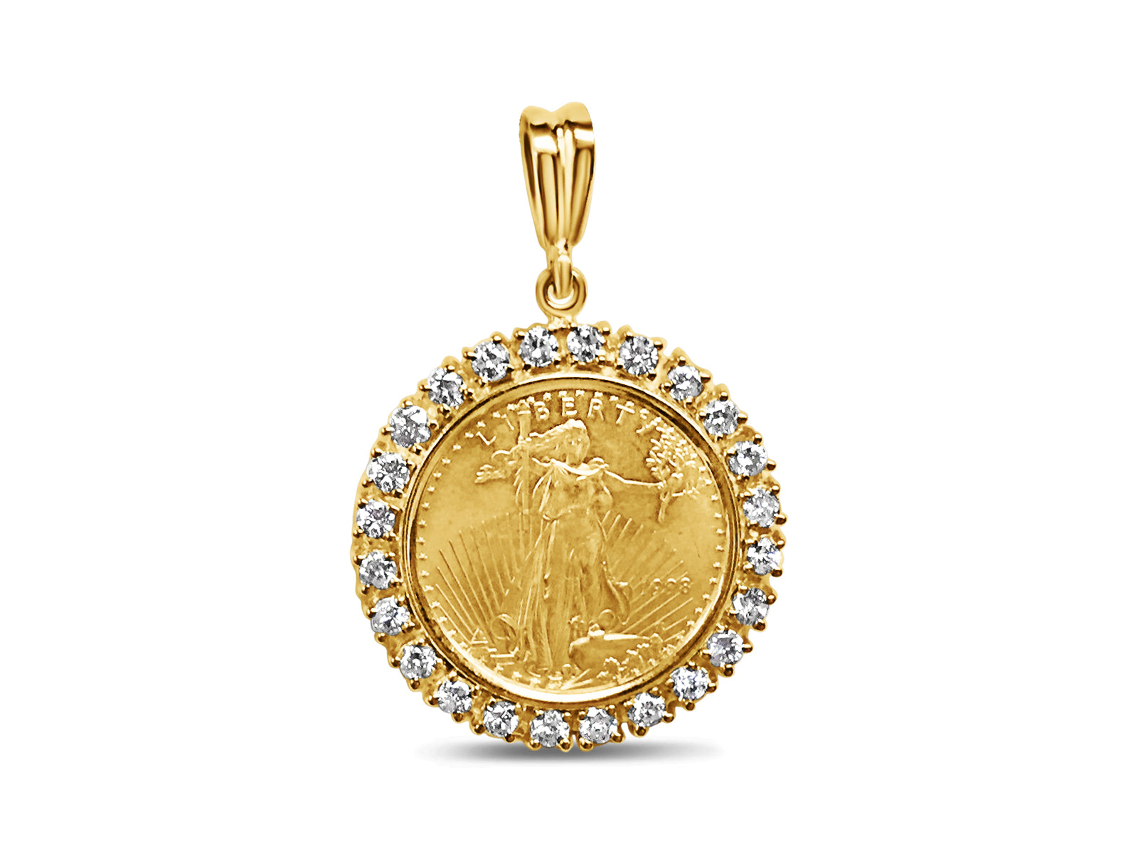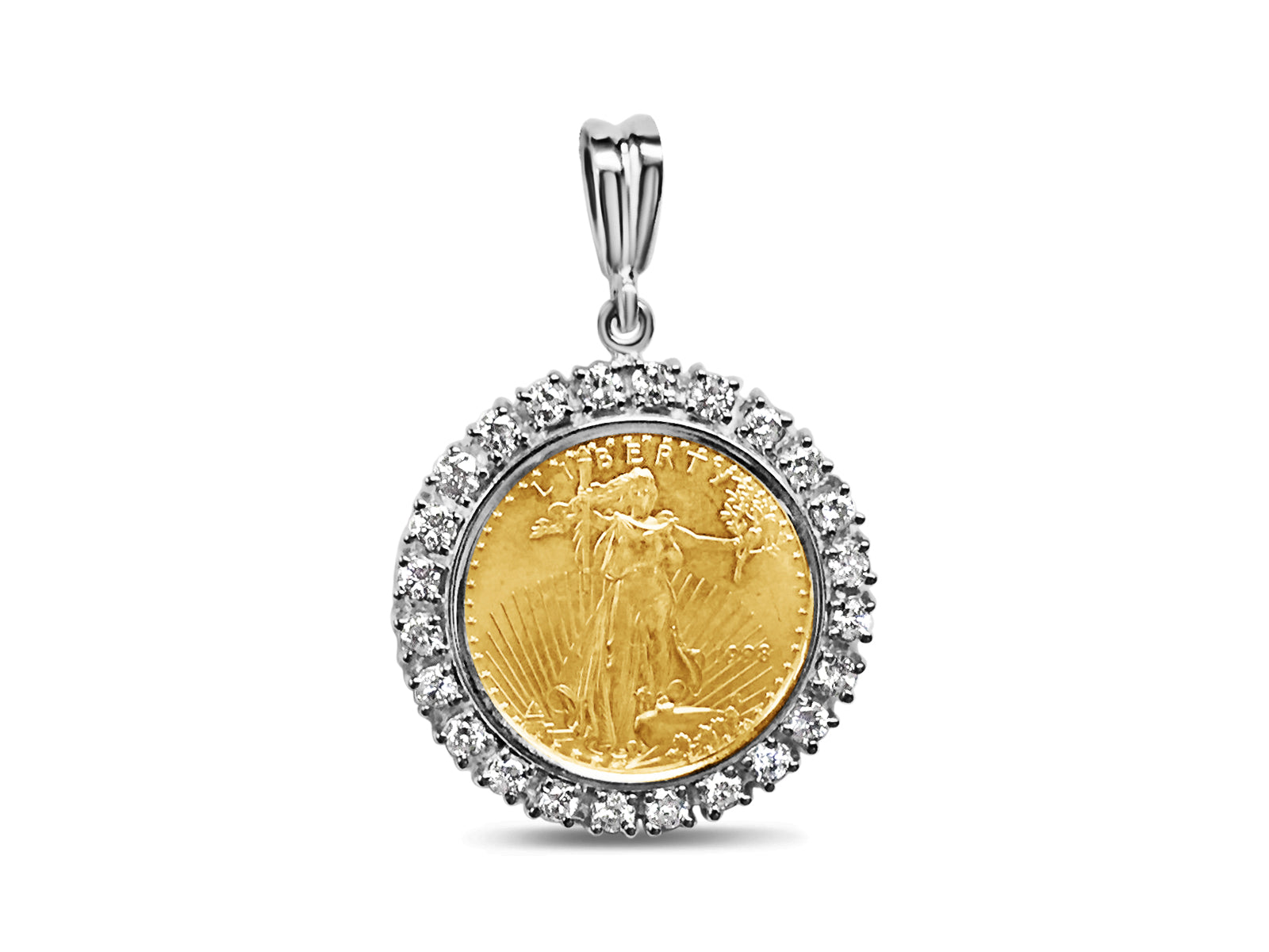 Title: Diamond Fancy Solid White/Yellow/Rose Gold Handmade Coin Pendant,