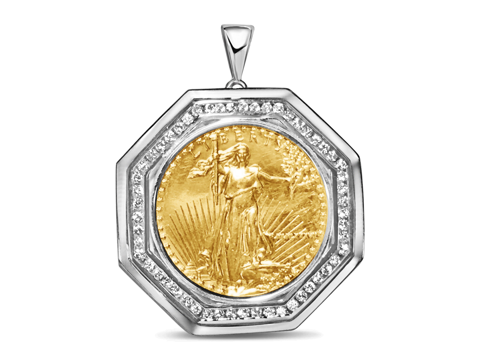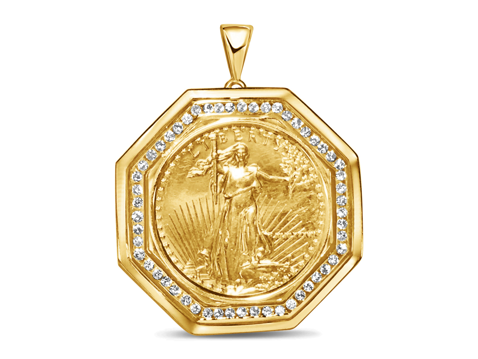 Diamond Fancy Solid Gold Handmade Coin Pendant , 1oz Coin ,
