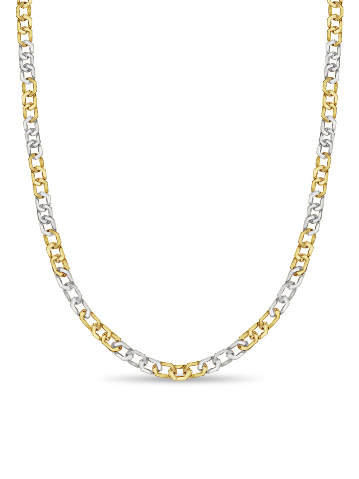 Title: Curb Solid White/Yellow/Rose Gold Handmade Necklace, 11mm, 16-30 Inch