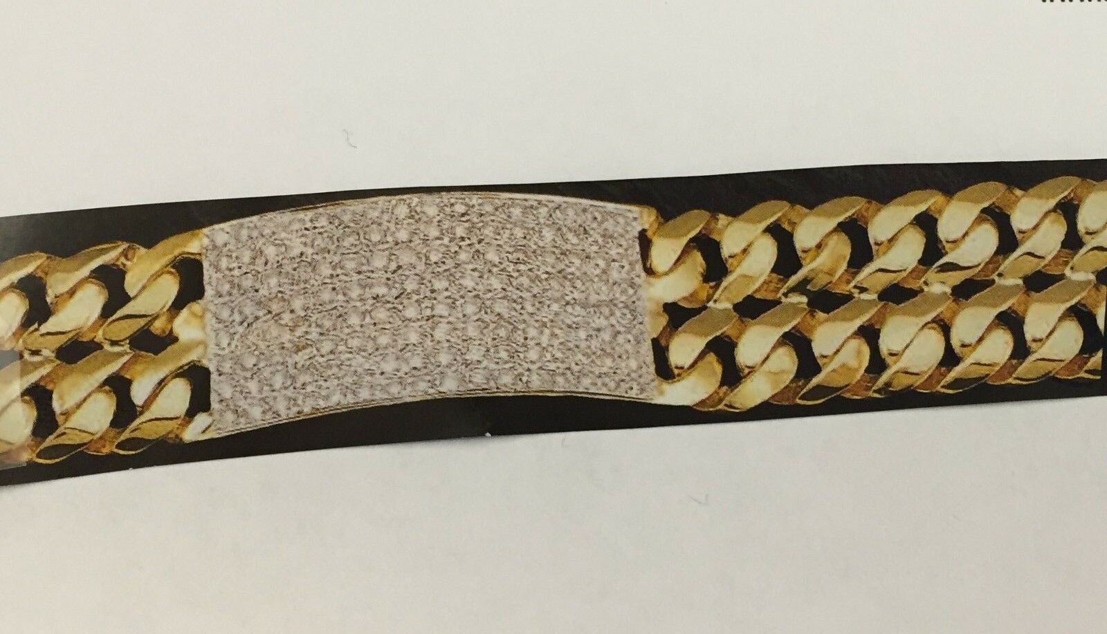 Title: Diamond ID Curb Solid White/Yellow/Rose Gold Handmade Bracelet, 21mm, 6.5-10 Inch