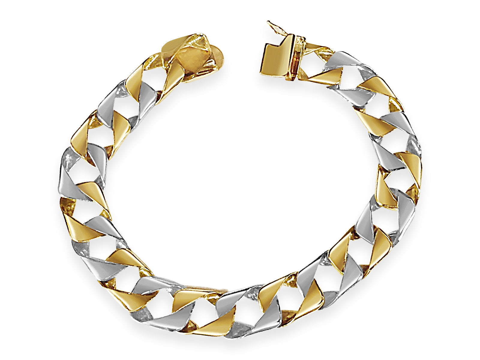 Crafted with precision by our seasoned artisans, each link of this bracelet tells a story of heritage and tradition. Available in 10K, 14K, or 18K gold, with a dimension of 11mm, it strikes the perfect balance between boldness and refinement. Choose from multiple gold colors such as; Yellow, White, Rose, Two-Tone, or Tri-Color to suit your style.