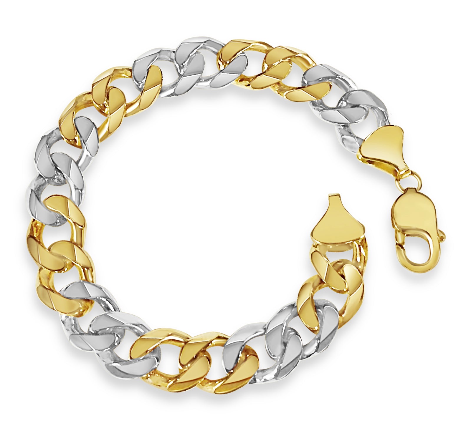 Crafted with precision by our seasoned artisans, each link of this bracelet tells a story of heritage and tradition. Available in 10K, 14K, or 18K gold, with a dimension of 13mm, it strikes the perfect balance between boldness and refinement. Choose from multiple gold colors such as; Yellow, White, Rose, Two-Tone, or Tri-Color to suit your style.