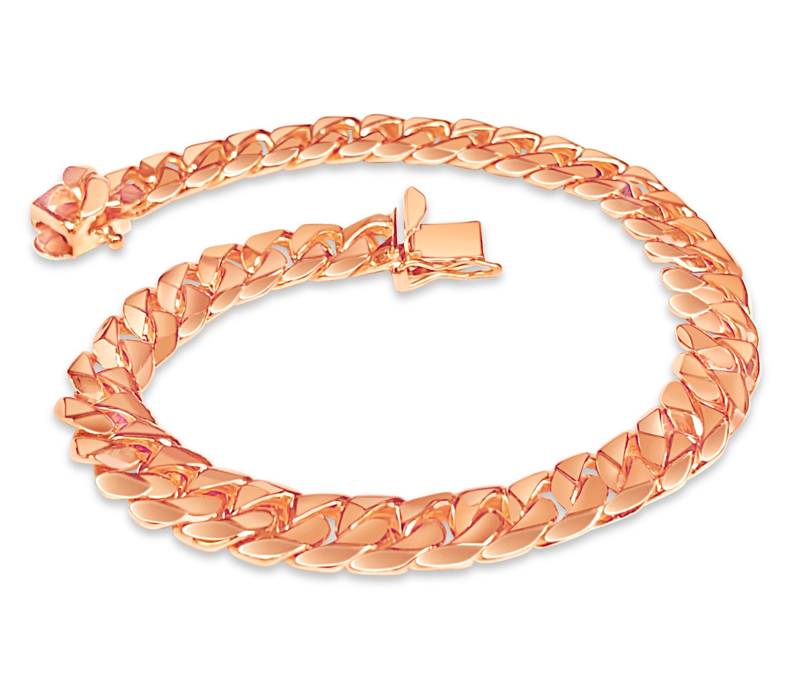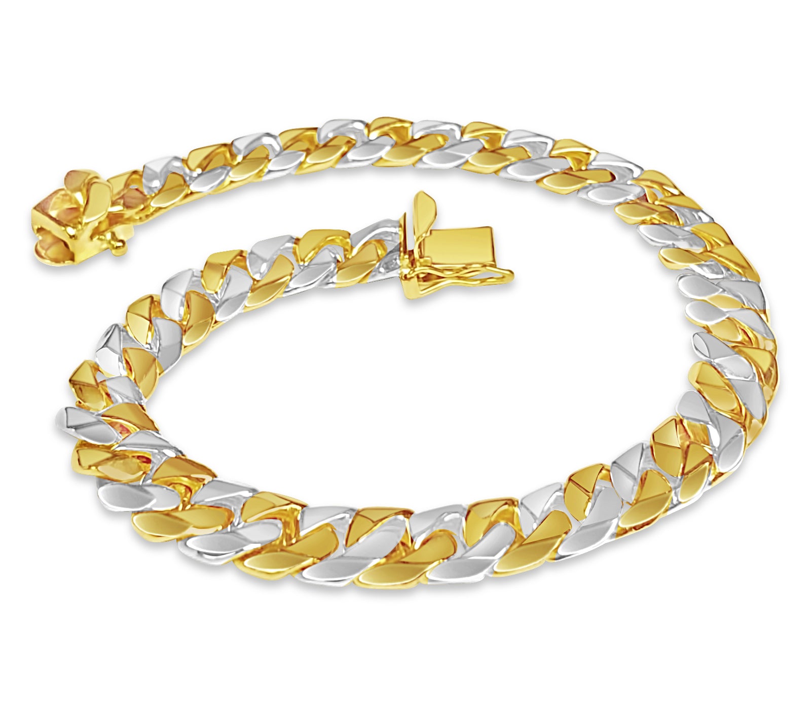 Crafted with precision by our seasoned artisans, each link of this bracelet tells a story of heritage and tradition. Available in 10K, 14K, or 18K gold, with a dimension of 9mm, it strikes the perfect balance between boldness and refinement. Choose from multiple gold colors such as; Yellow, White, Rose, Two-Tone, or Tri-Color to suit your style.