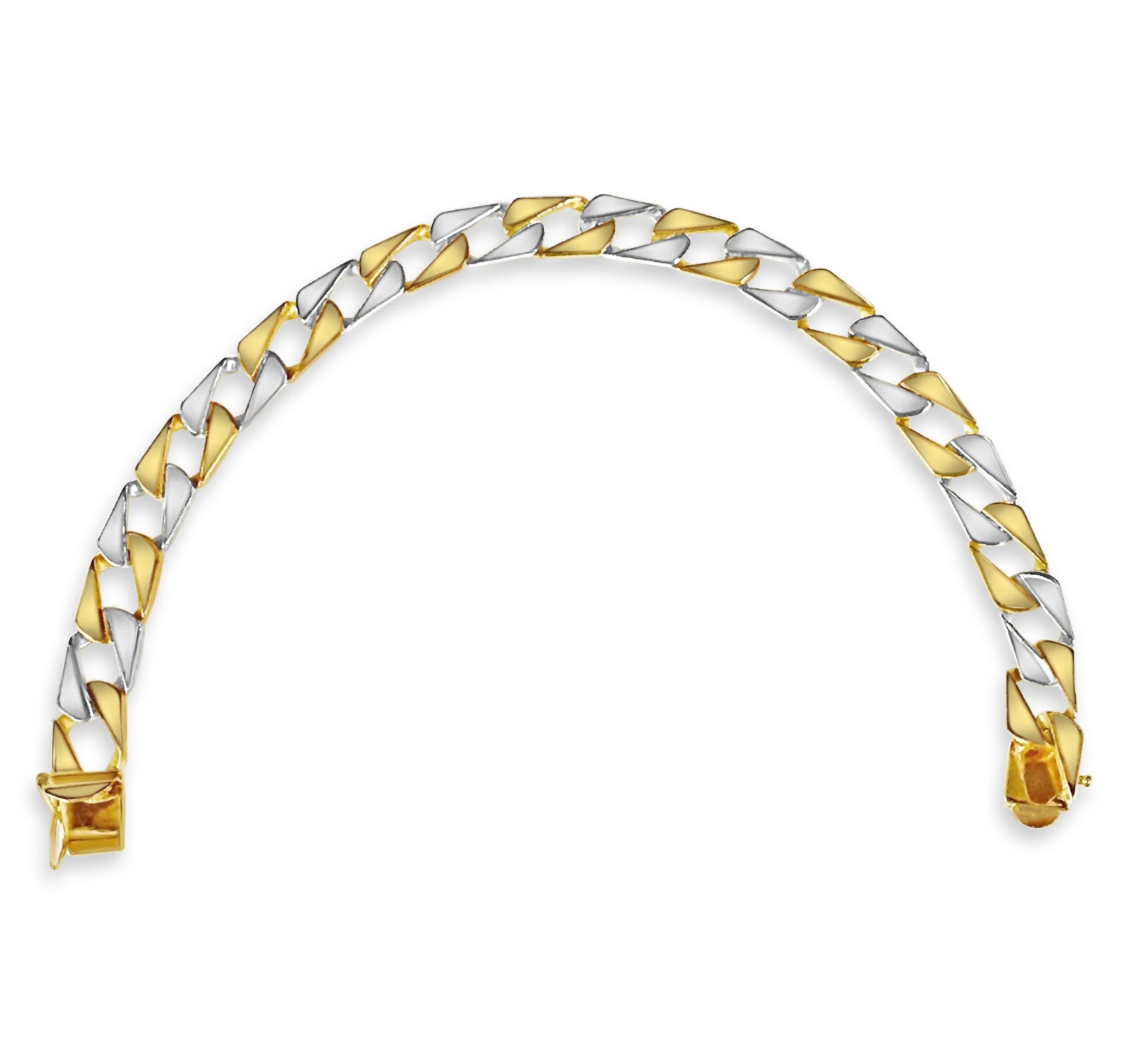 Crafted with precision by our seasoned artisans, each link of this bracelet tells a story of heritage and tradition. Available in 10K, 14K, or 18K gold, with a dimension of 9mm, it strikes the perfect balance between boldness and refinement. Choose from multiple gold colors such as; Yellow, White, Rose, Two-Tone, or Tri-Color to suit your style.