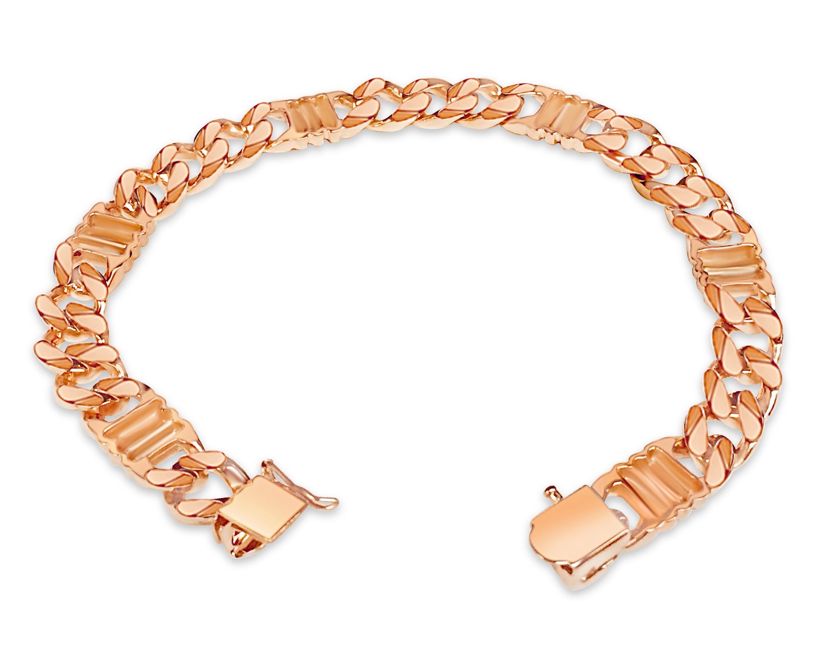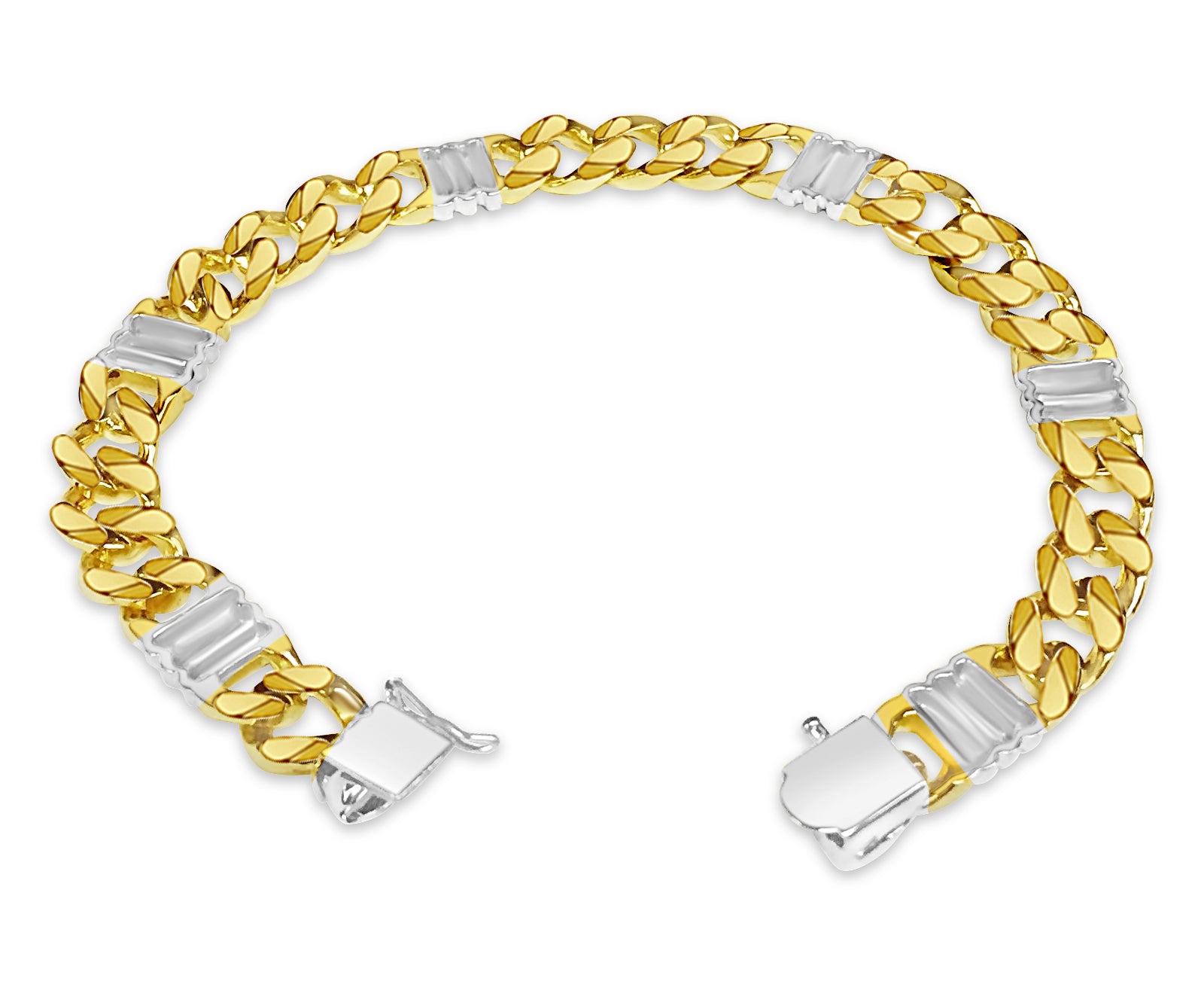 Crafted with precision by our seasoned artisans, each link of this bracelet tells a story of heritage and tradition. Available in 10K, 14K, or 18K gold, with a dimension of 9mm, it strikes the perfect balance between boldness and refinement. Choose from multiple gold colors such as; Yellow, White, Rose, Two-Tone, or Tri-Color to suit your style.