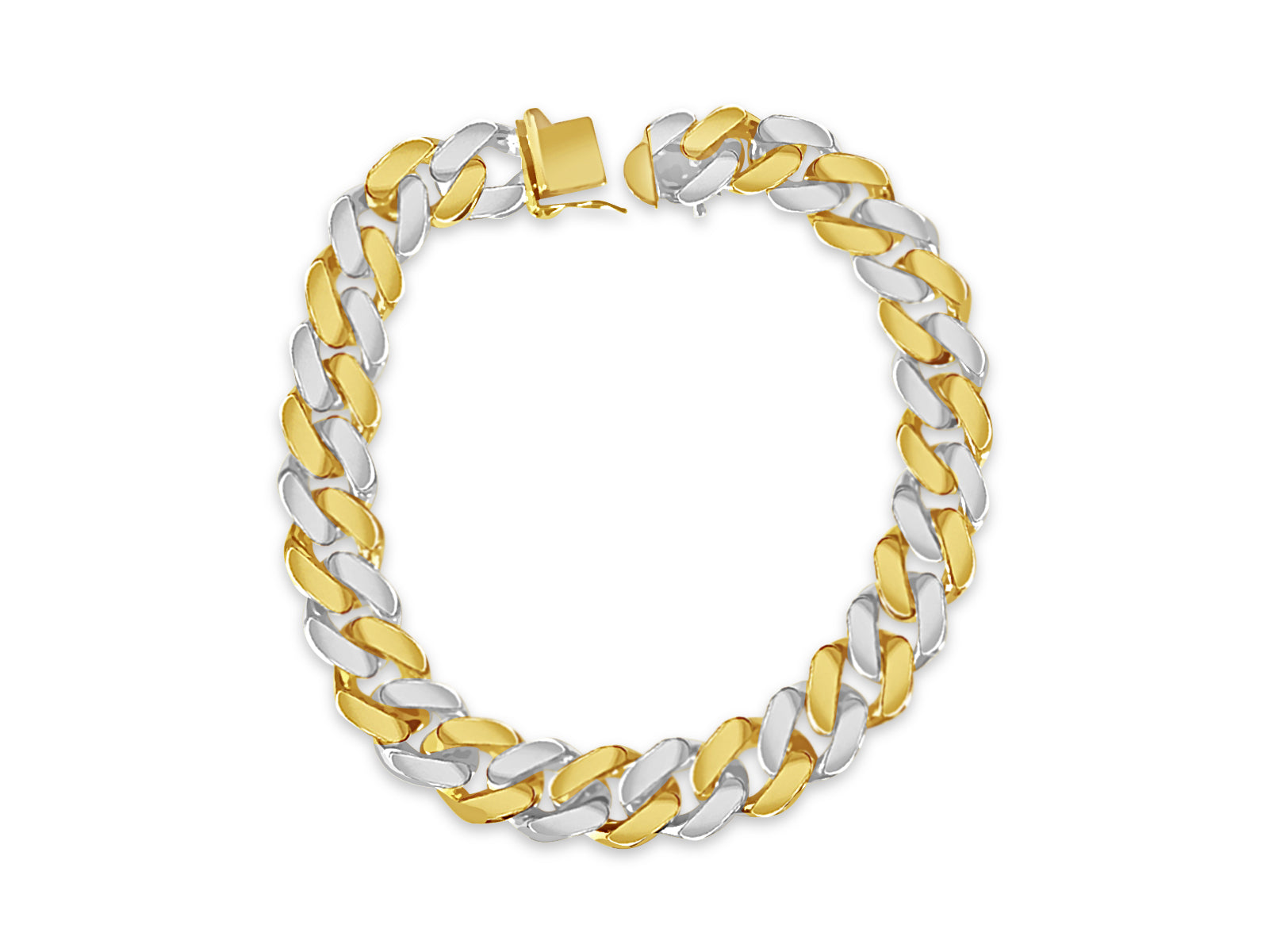 Crafted with precision by our seasoned artisans, each link of this bracelet tells a story of heritage and tradition. Available in 10K, 14K, or 18K gold, with a dimension of 12mm, it strikes the perfect balance between boldness and refinement. Choose from multiple gold colors such as; Yellow, White, Rose, Two-Tone, or Tri-Color to suit your style.
