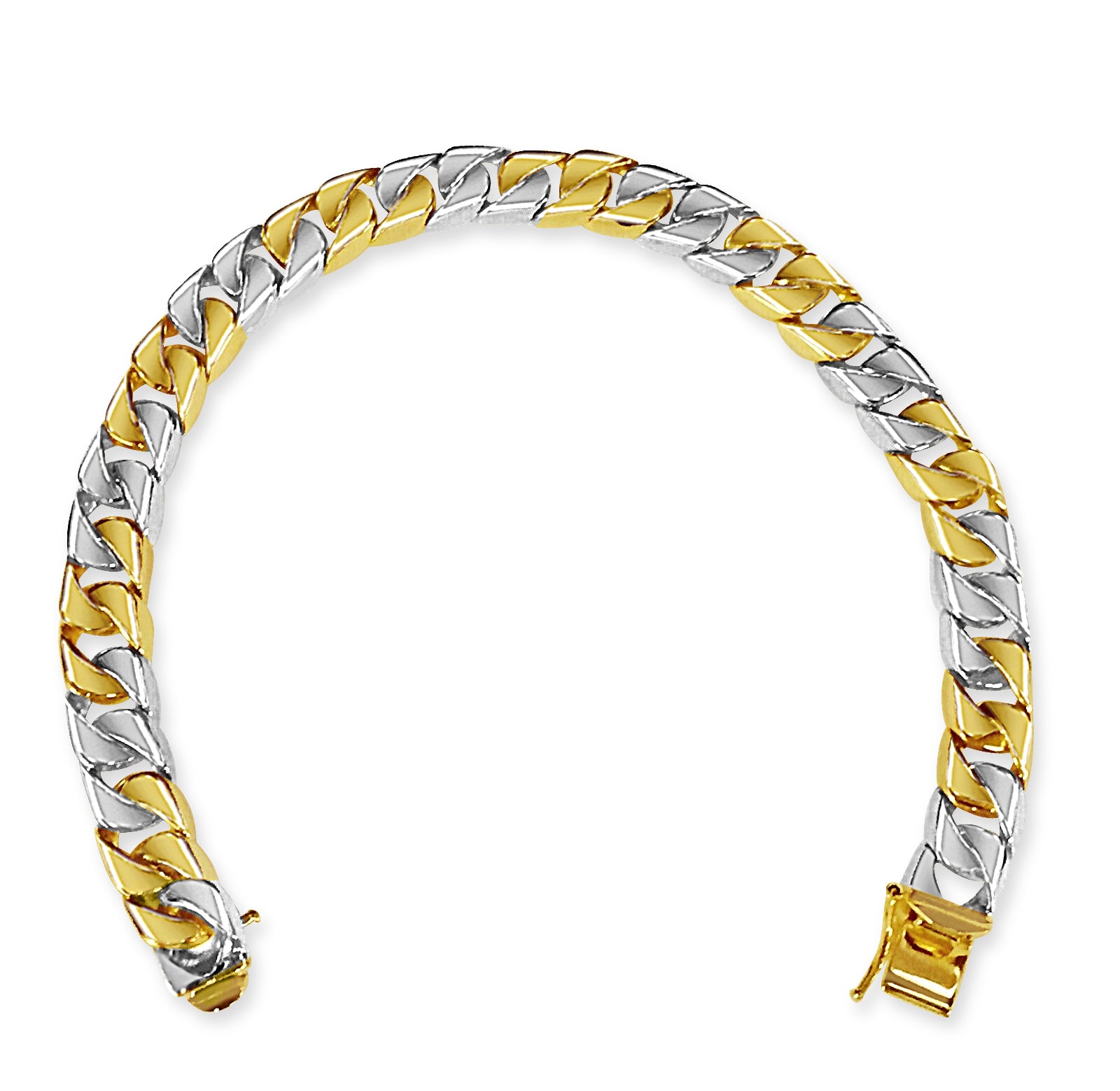 Crafted with precision by our seasoned artisans, each link of this bracelet tells a story of heritage and tradition. Available in 10K, 14K, or 18K gold, with a dimension of 9mm, it strikes the perfect balance between boldness and refinement. Choose from multiple gold colors such as; Yellow, White, Rose, Two-Tone, or Tri-Color to suit your style.