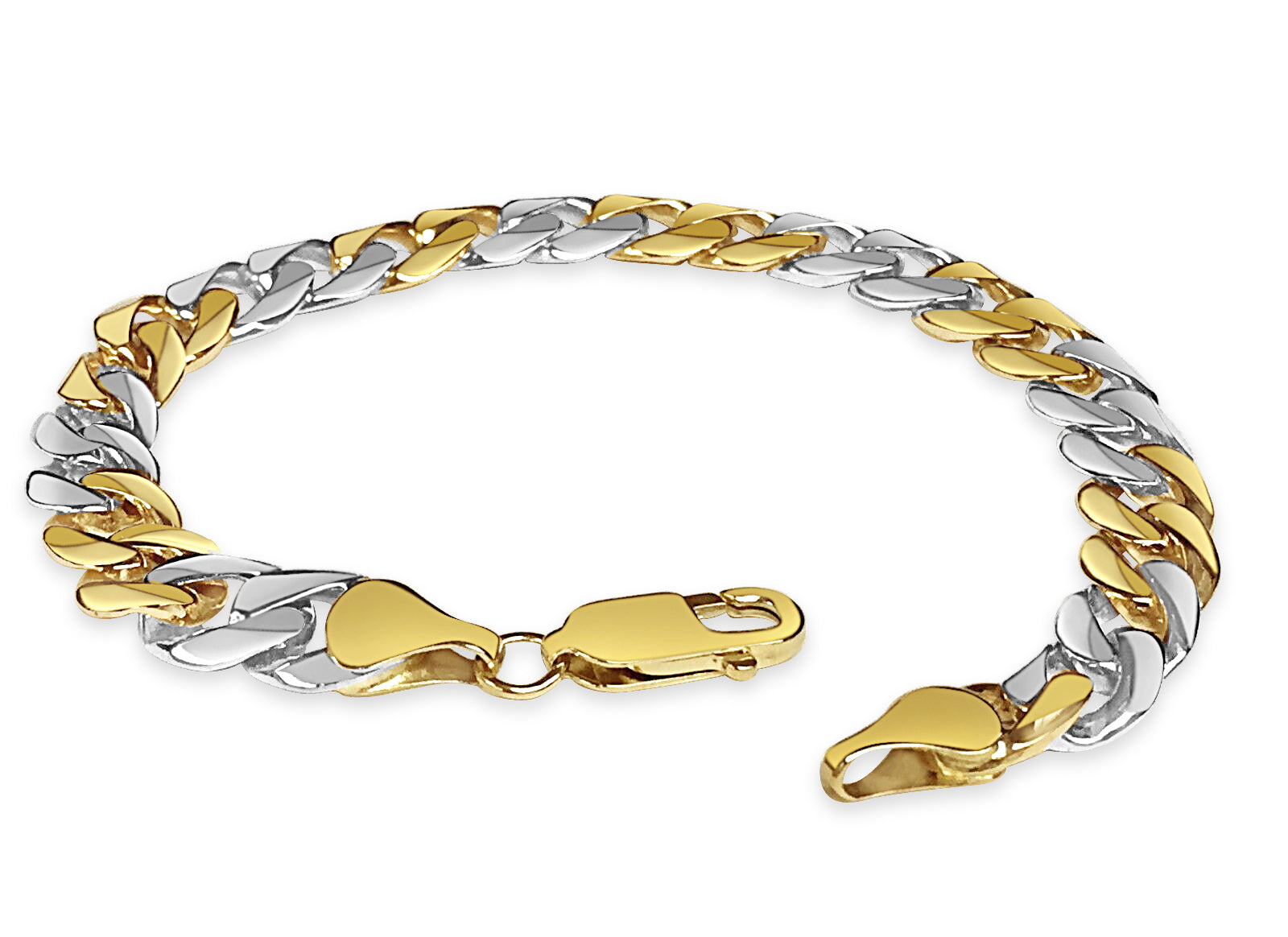 Crafted with precision by our seasoned artisans, each link of this bracelet tells a story of heritage and tradition. Available in 10K, 14K, or 18K gold, with a dimension of 9mm, it strikes the perfect balance between boldness and refinement. Choose from multiple gold colors such as; Yellow, White, Rose, Two-Tone, or Tri-Color to suit your style.