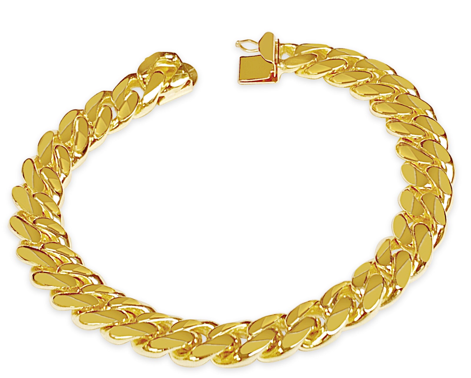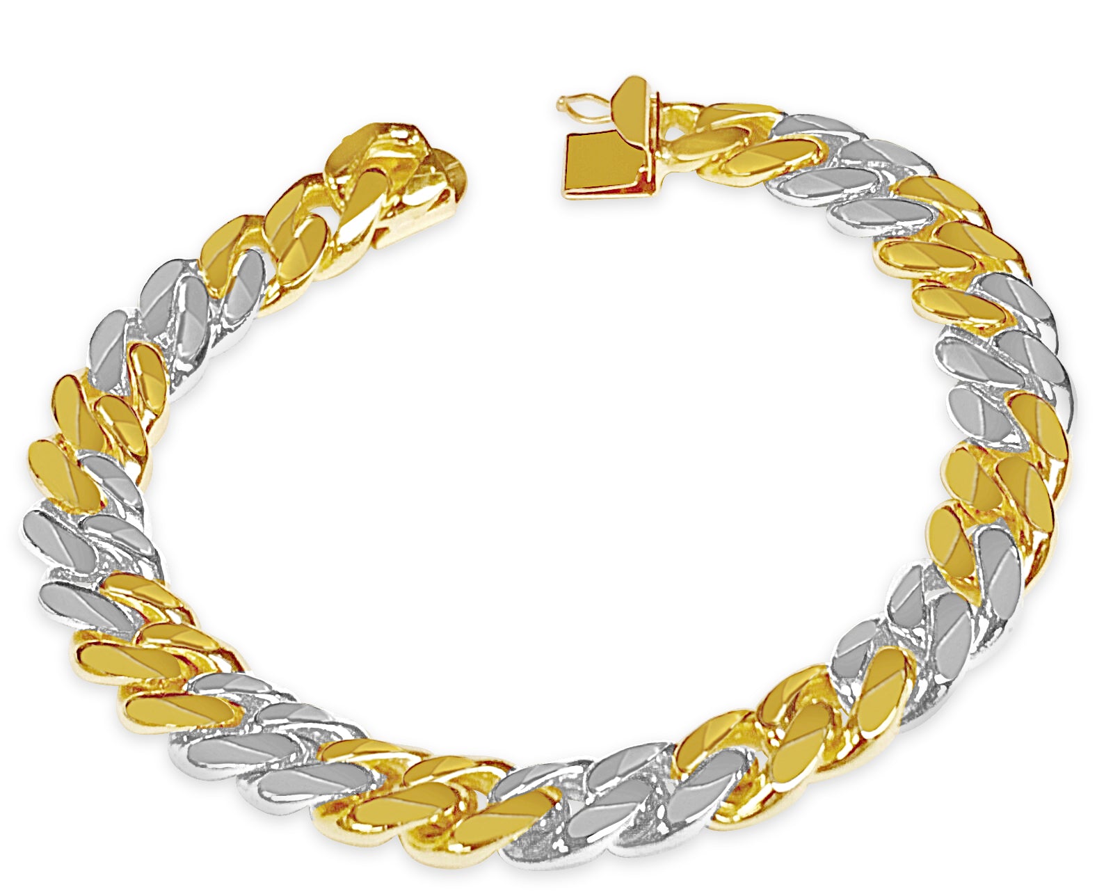 Crafted with precision by our seasoned artisans, each link of this bracelet tells a story of heritage and tradition. Available in 10K, 14K, or 18K gold, with a dimension of 11mm, it strikes the perfect balance between boldness and refinement. Choose from multiple gold colors such as; Yellow, White, Rose, Two-Tone, or Tri-Color to suit your style.