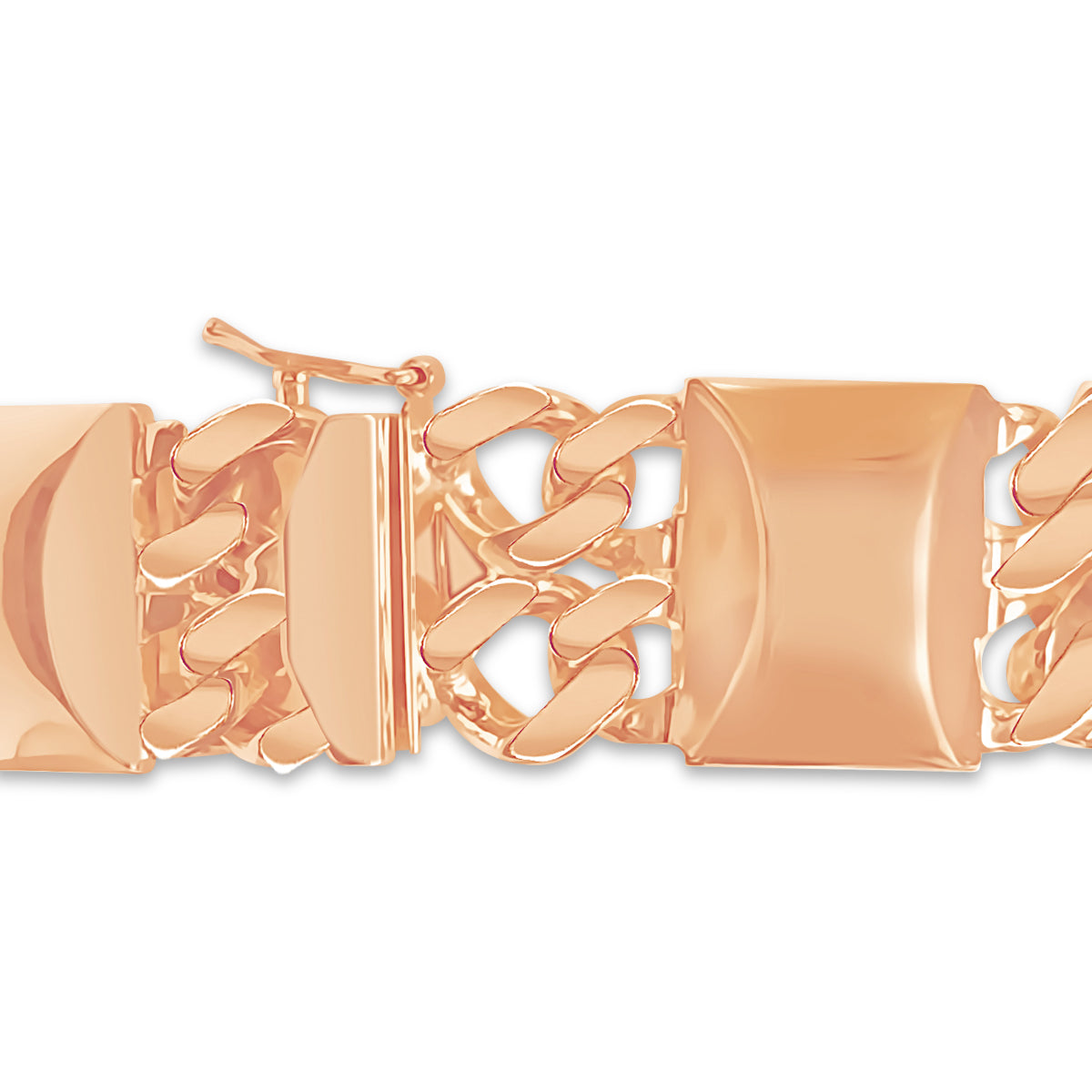 Crafted with precision by our seasoned artisans, each link of this bracelet tells a story of heritage and tradition. Available in 10K, 14K, or 18K gold, with a dimension of 17mm, it strikes the perfect balance between boldness and refinement. Choose from multiple gold colors such as; Yellow, White, Rose, Two-Tone, or Tri-Color to suit your style.