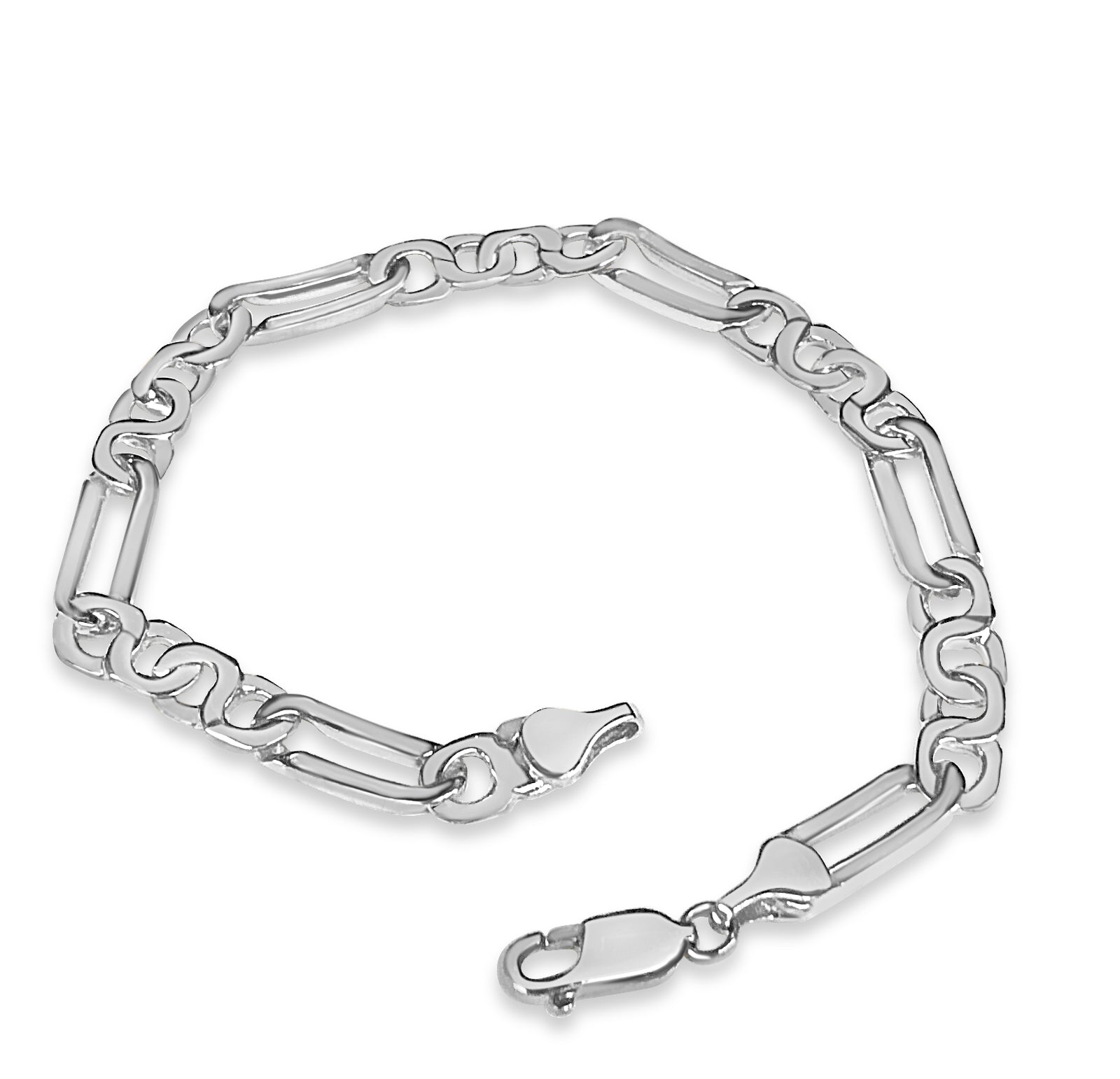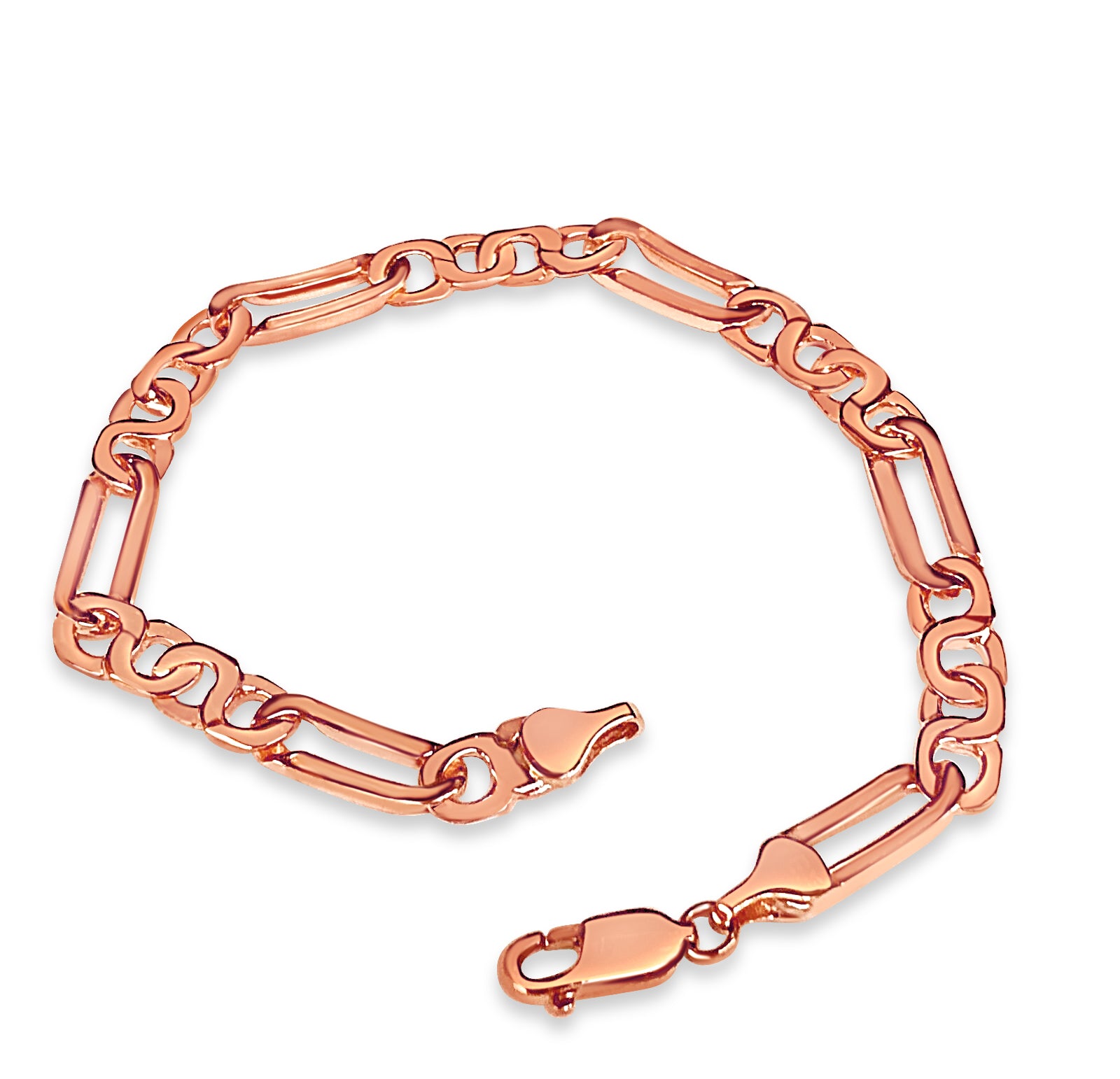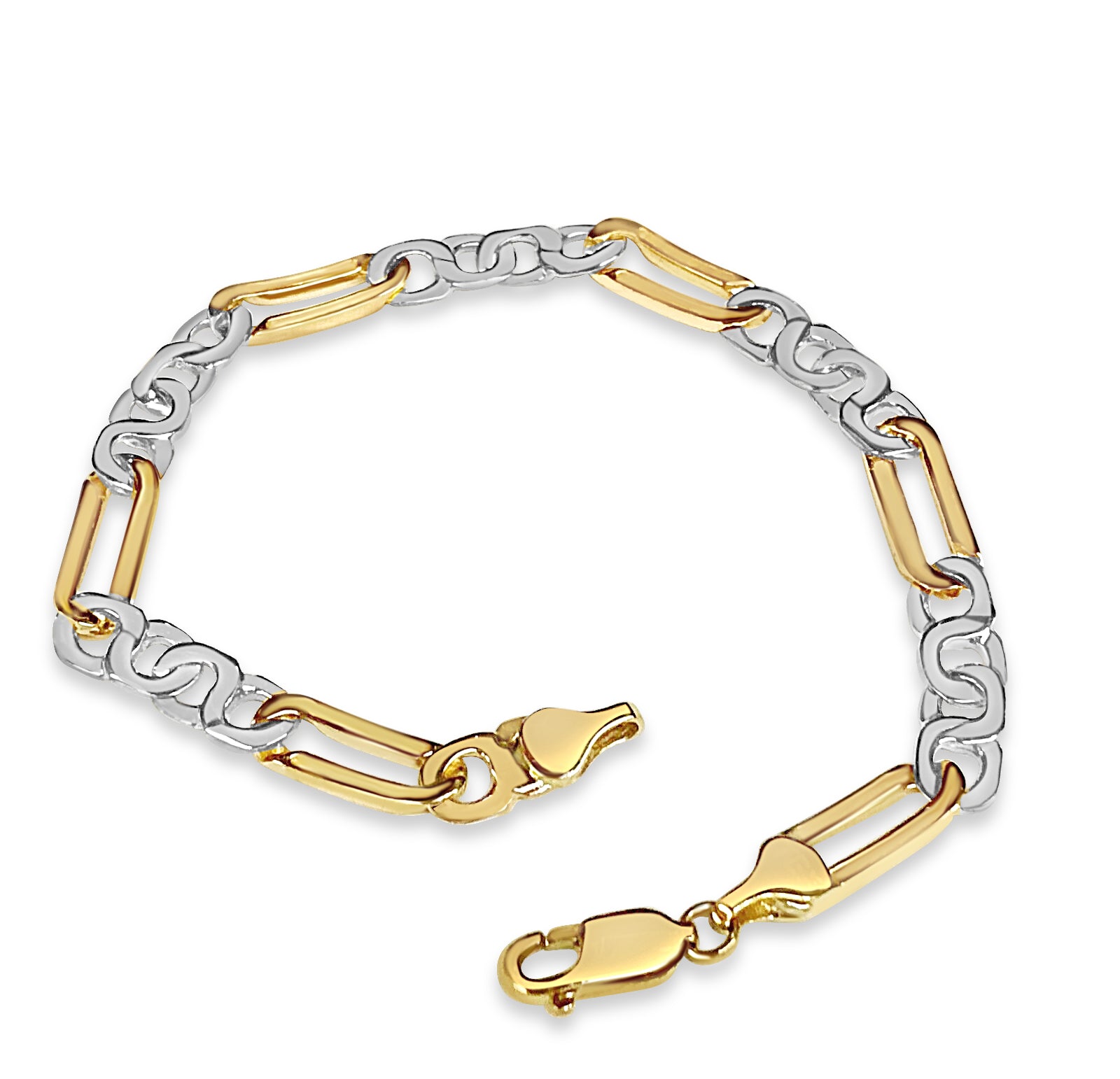 Title: Figaro Infinity Solid White/Yellow/Rose Gold Handmade Bracelet, 6mm, 6.5-10 Inch