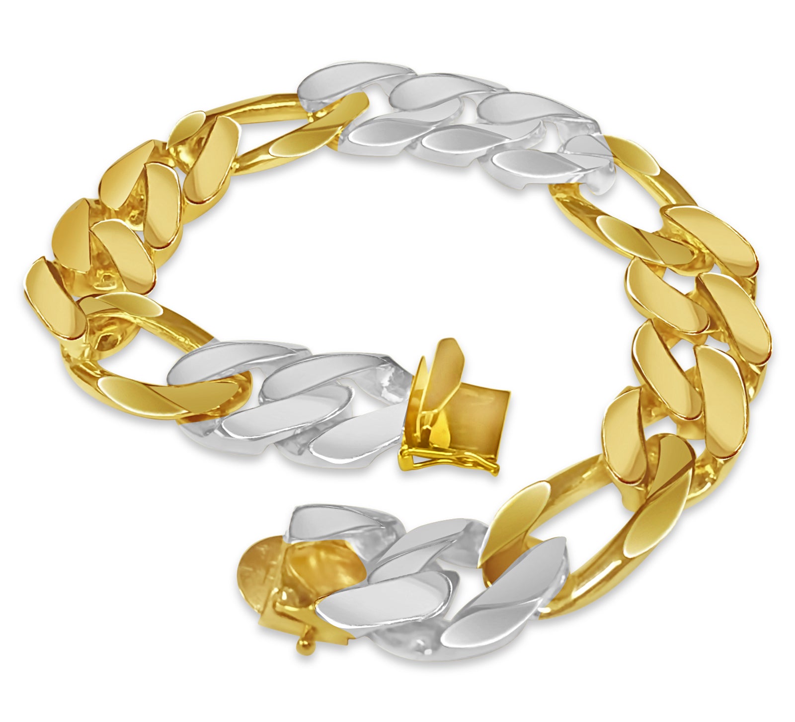 Crafted with precision by our seasoned artisans, each link of this bracelet tells a story of heritage and tradition. Available in 10K, 14K, or 18K gold, with a dimension of 16mm, it strikes the perfect balance between boldness and refinement. Choose from multiple gold colors such as; Yellow, White, Rose, Two-Tone, or Tri-Color to suit your style.