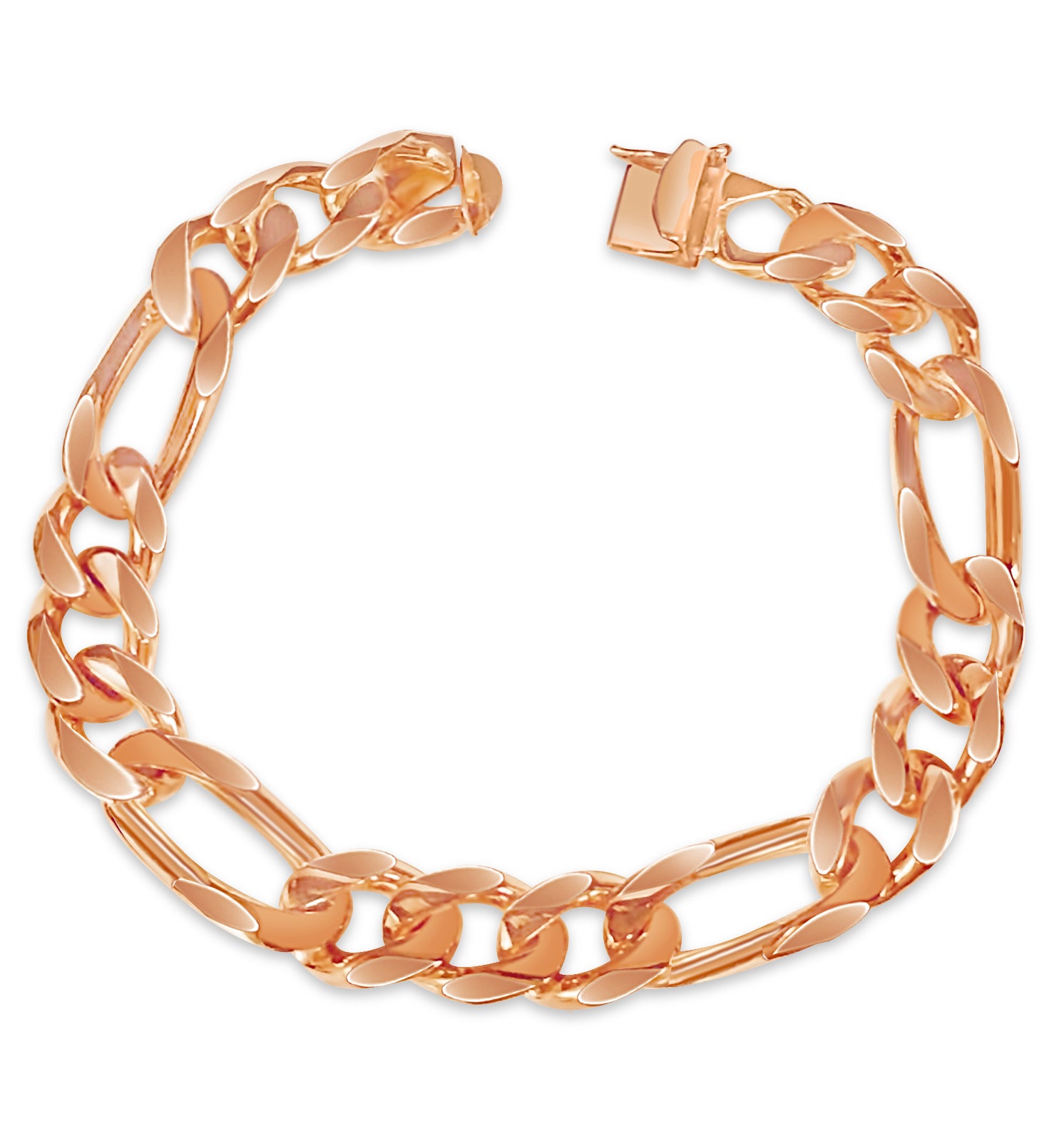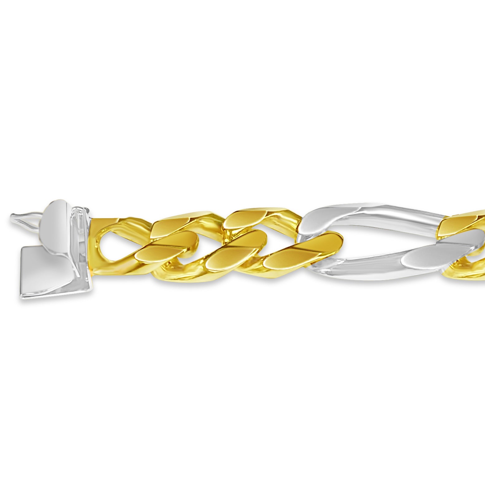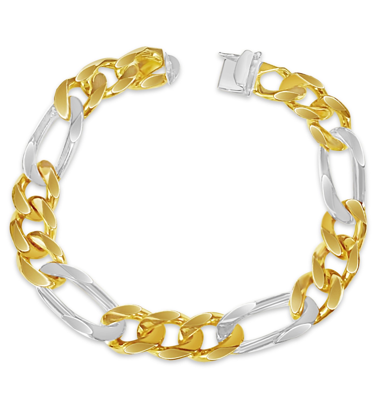 Title: Figaro Solid White/Yellow/Rose Gold Handmade Bracelet, 12mm, 6.5-10 Inch