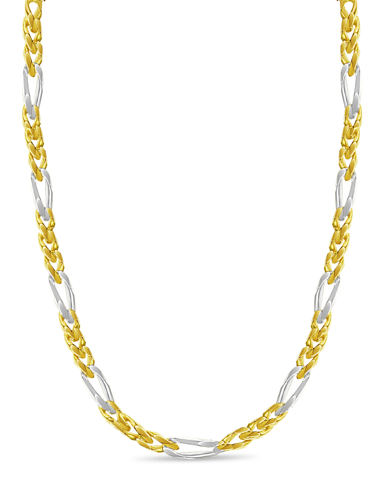 Title: Figaro Solid White/Yellow/Rose Gold Handmade Necklace, 12mm, 16-30 Inch