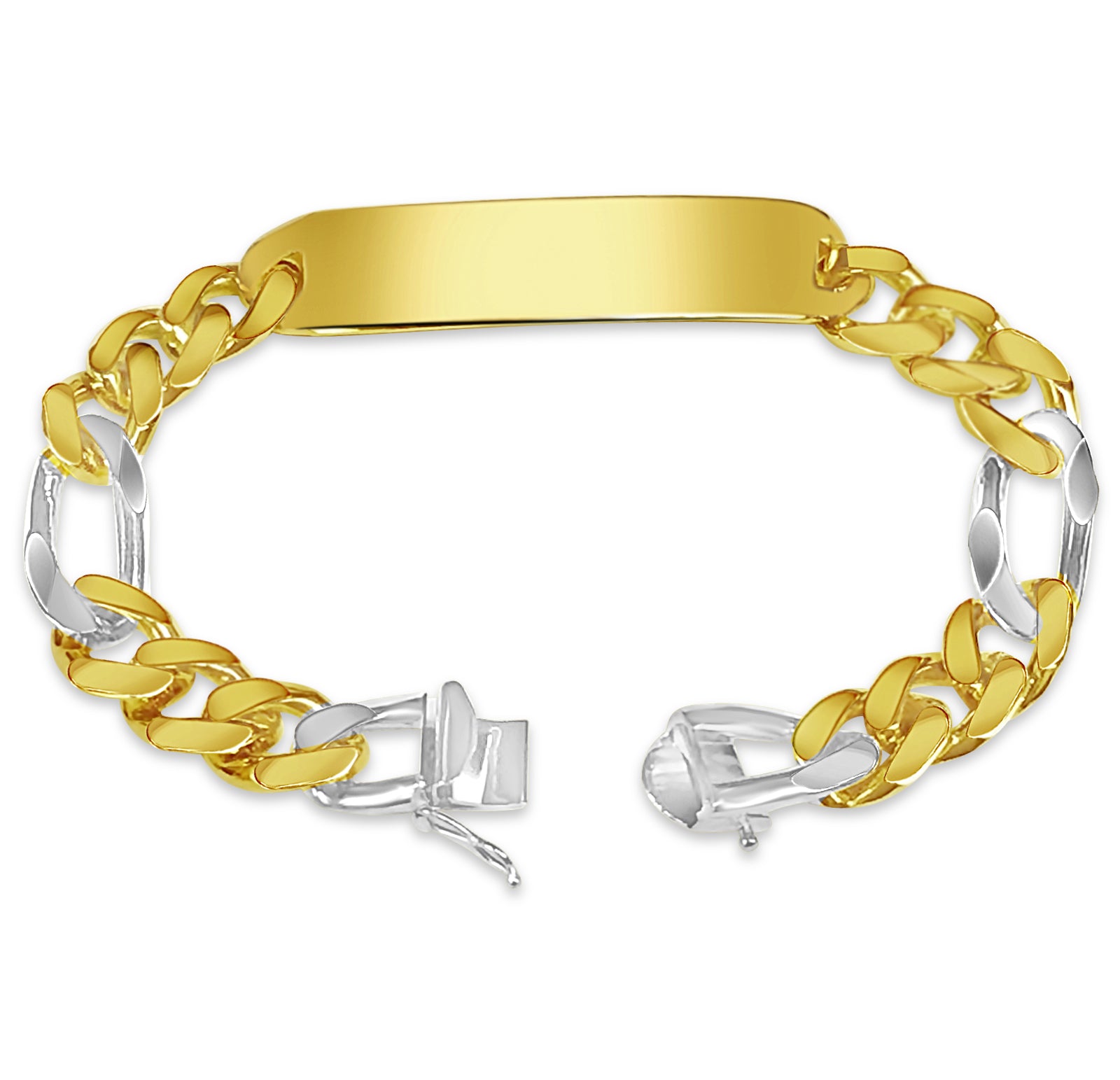 Title: ID Figaro Solid White/Yellow/Rose Gold Handmade Bracelet, 12mm, 6.5-10 Inch