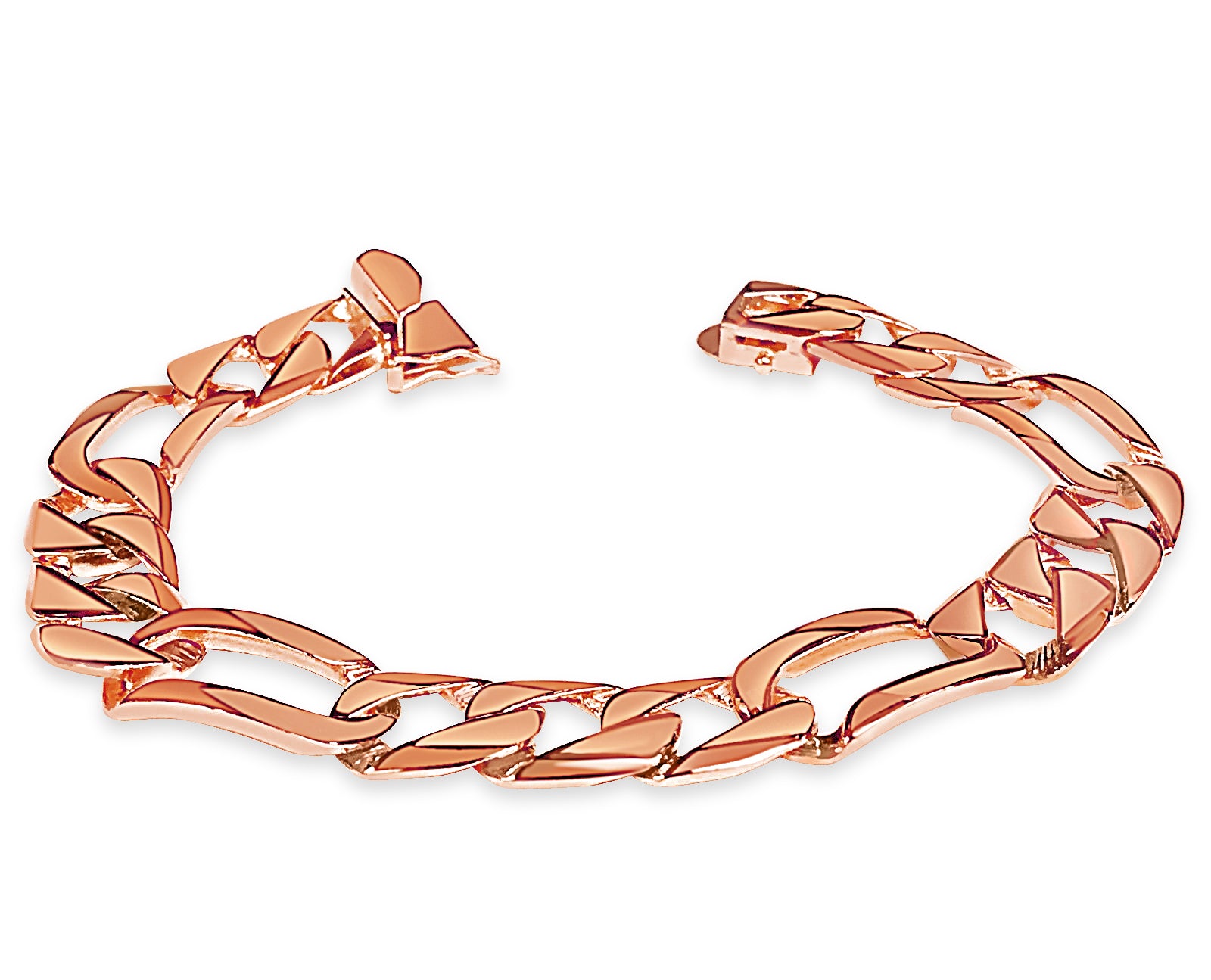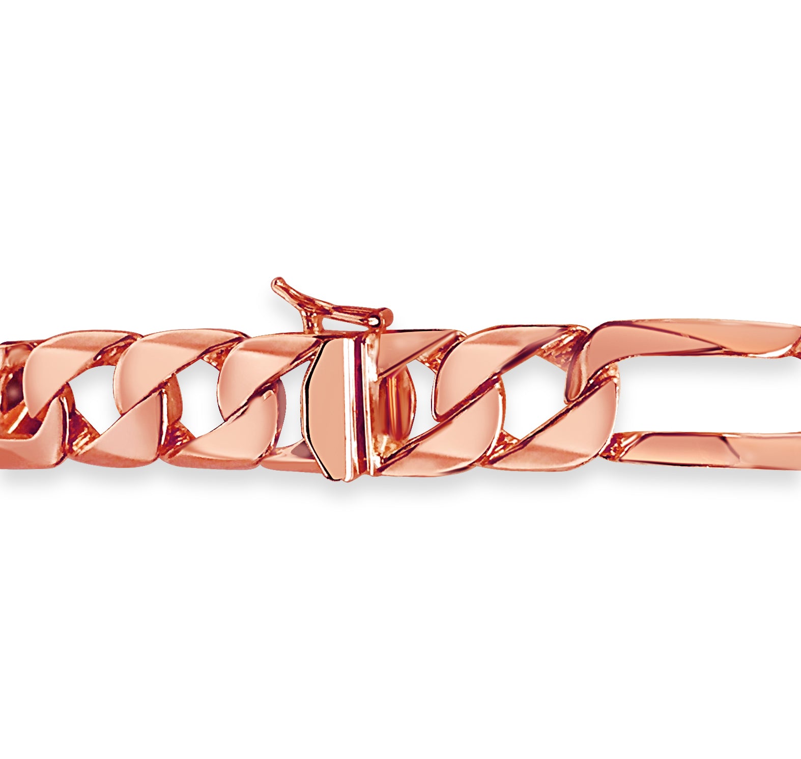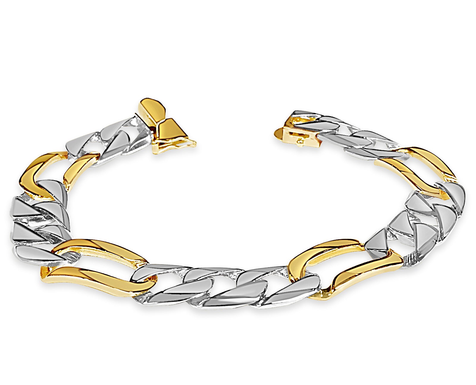 Title: Figaro Solid White/Yellow/Rose Gold Handmade Bracelet, 12mm, 6.5-10 Inch