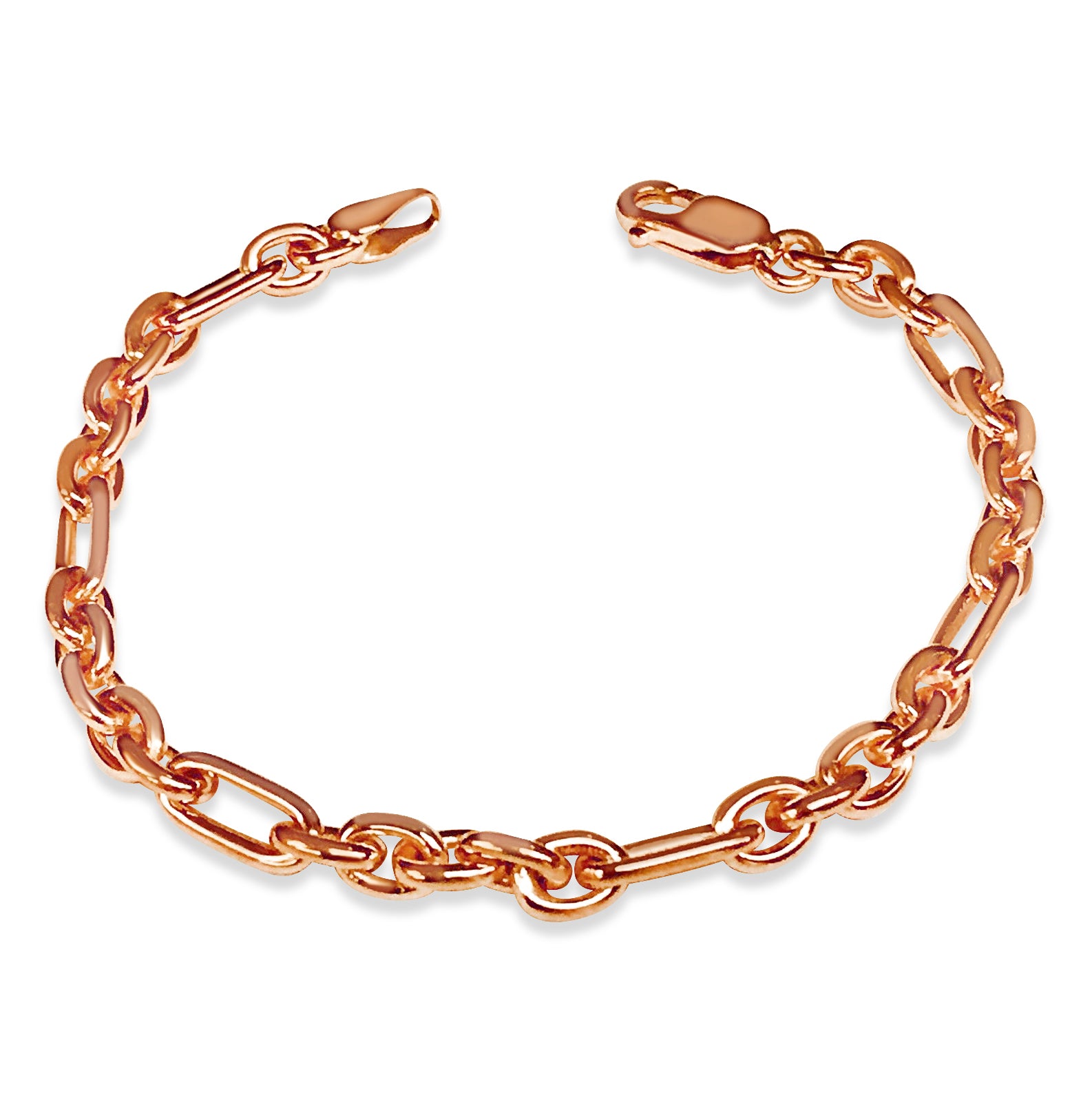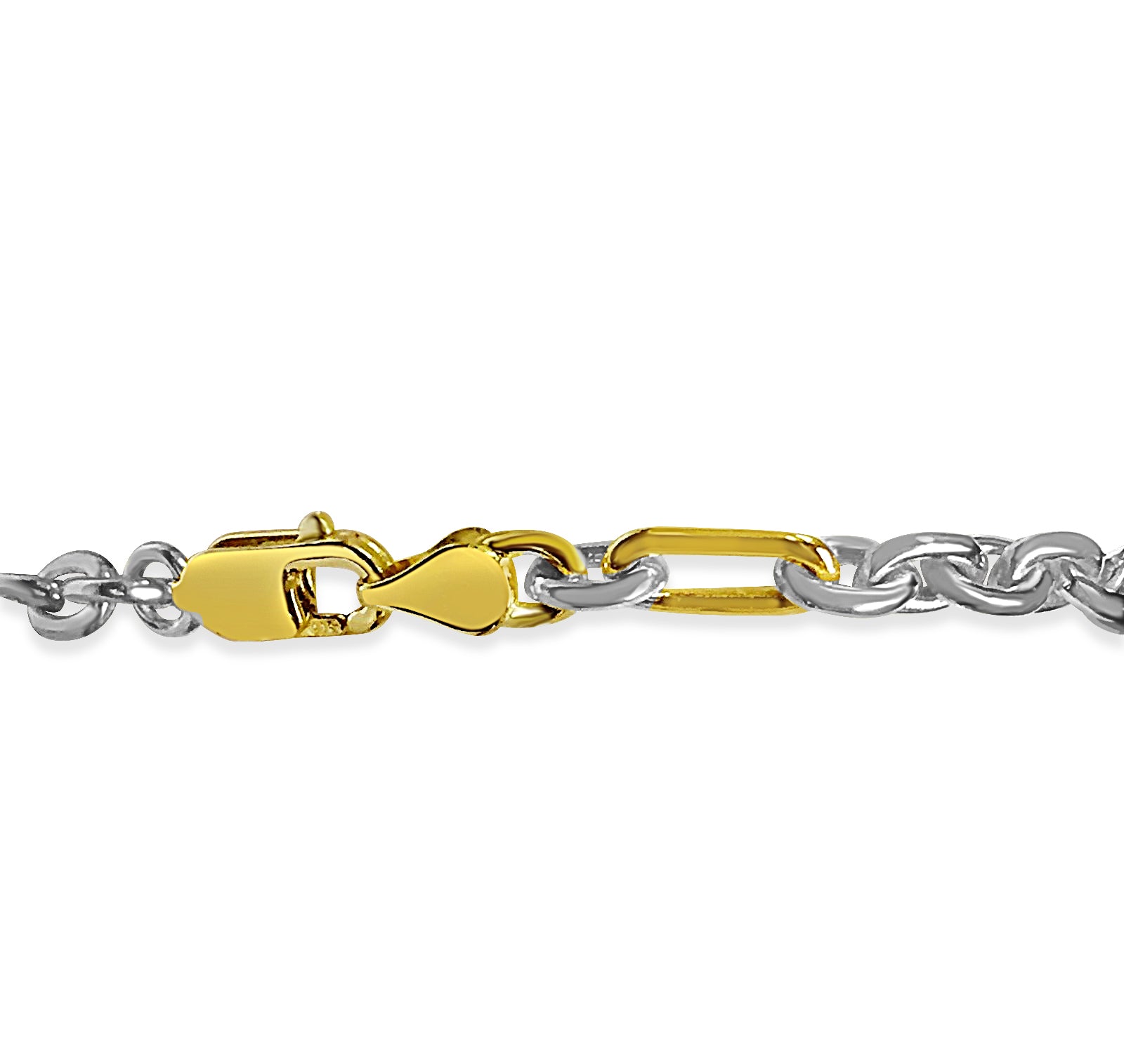 Title: Rolo (Figaro) Solid White/Yellow/Rose Gold Handmade Bracelet, 5mm, 6.5-10 Inch