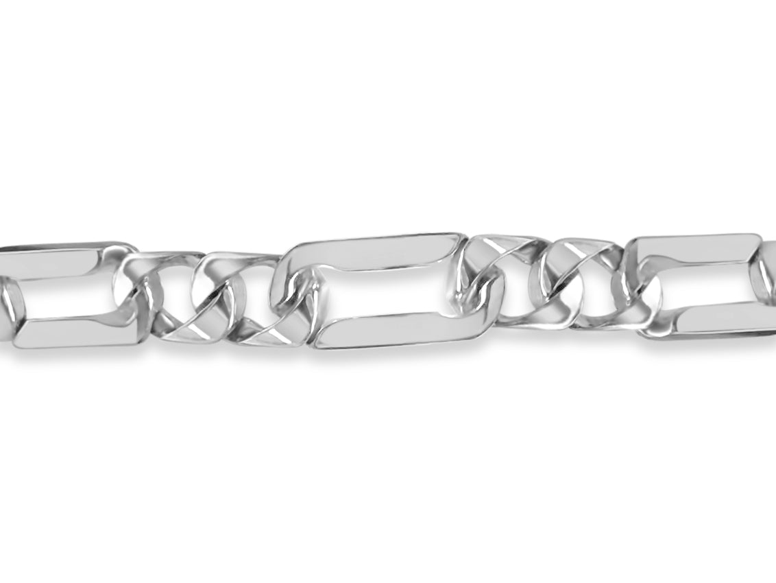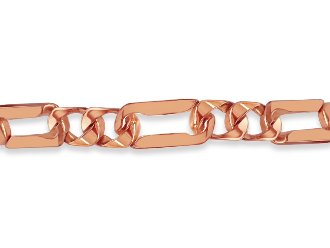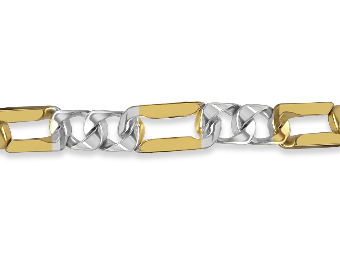 Title: Figaro Solid White/Yellow/Rose Gold Handmade Bracelet, 7mm, 6.5-10 Inch