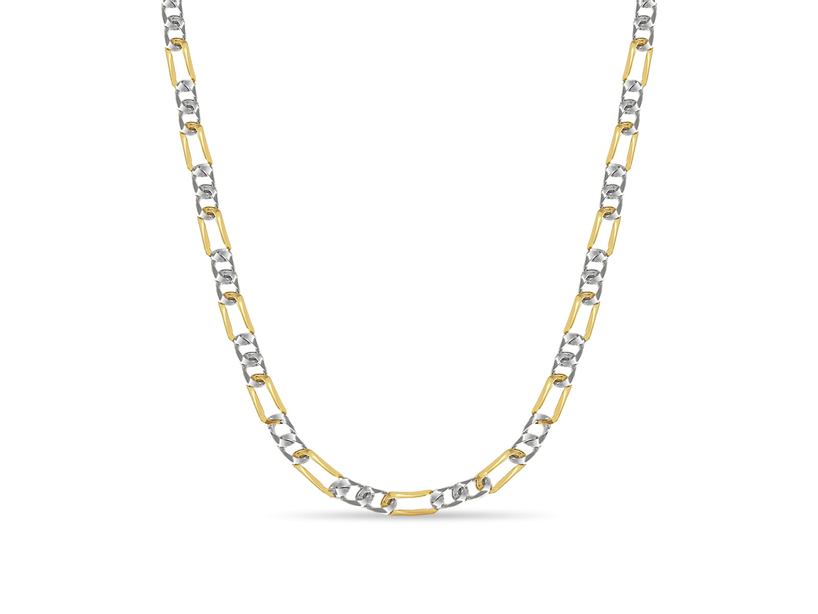Title: Figaro Solid White/Yellow/Rose Gold Handmade Necklace, 7mm, 16-30 Inch