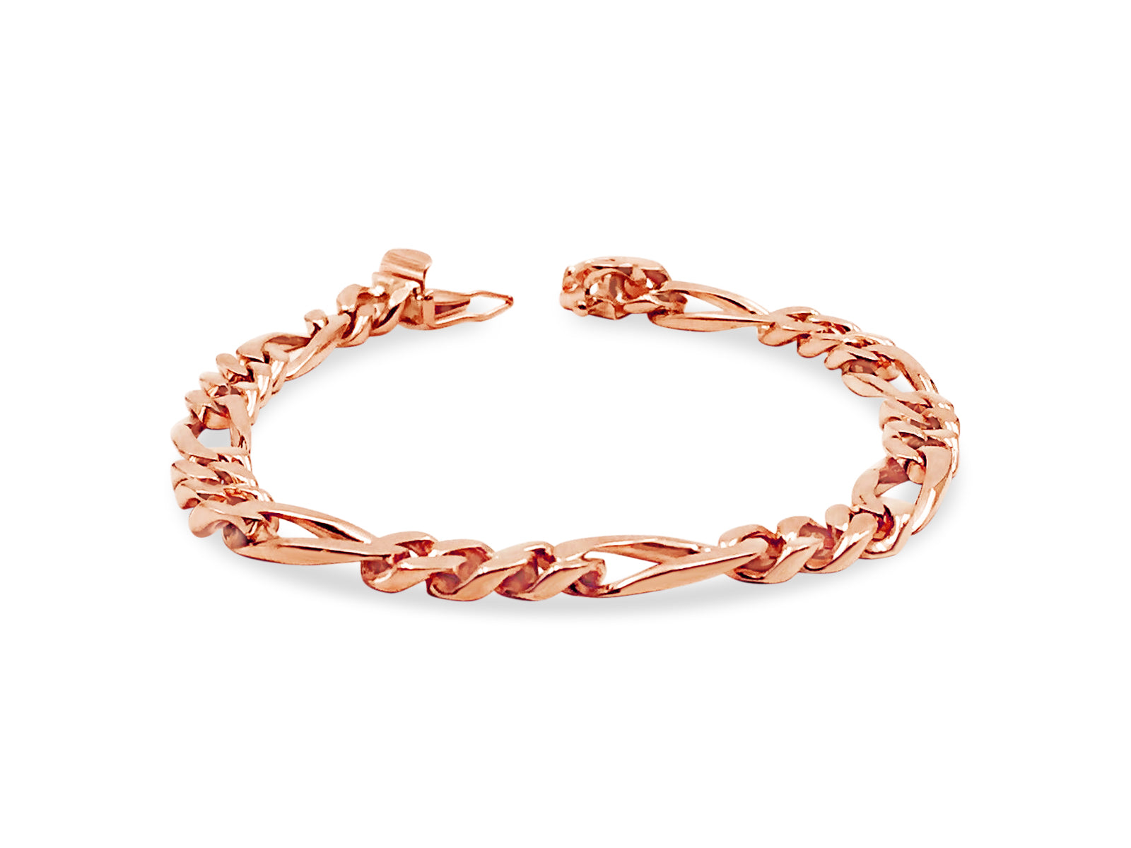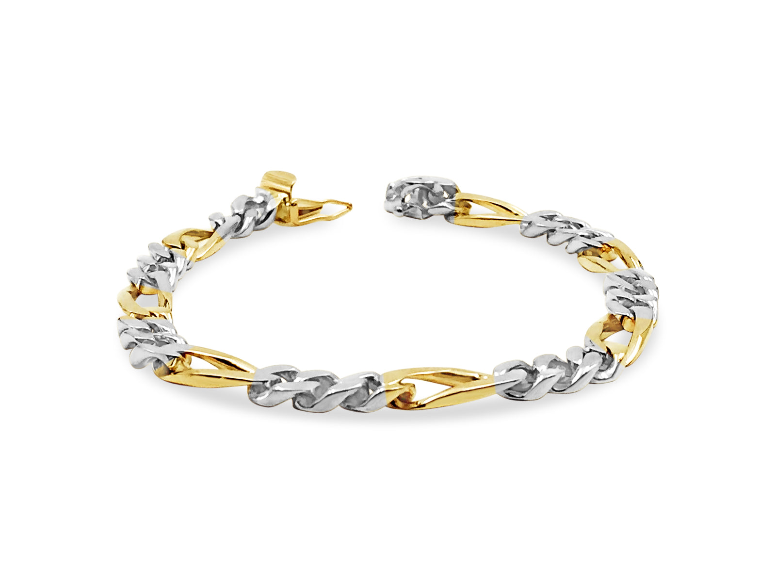 Title: Figaro Solid White/Yellow/Rose Gold Handmade Bracelet, 7mm, 6.5-10 Inch