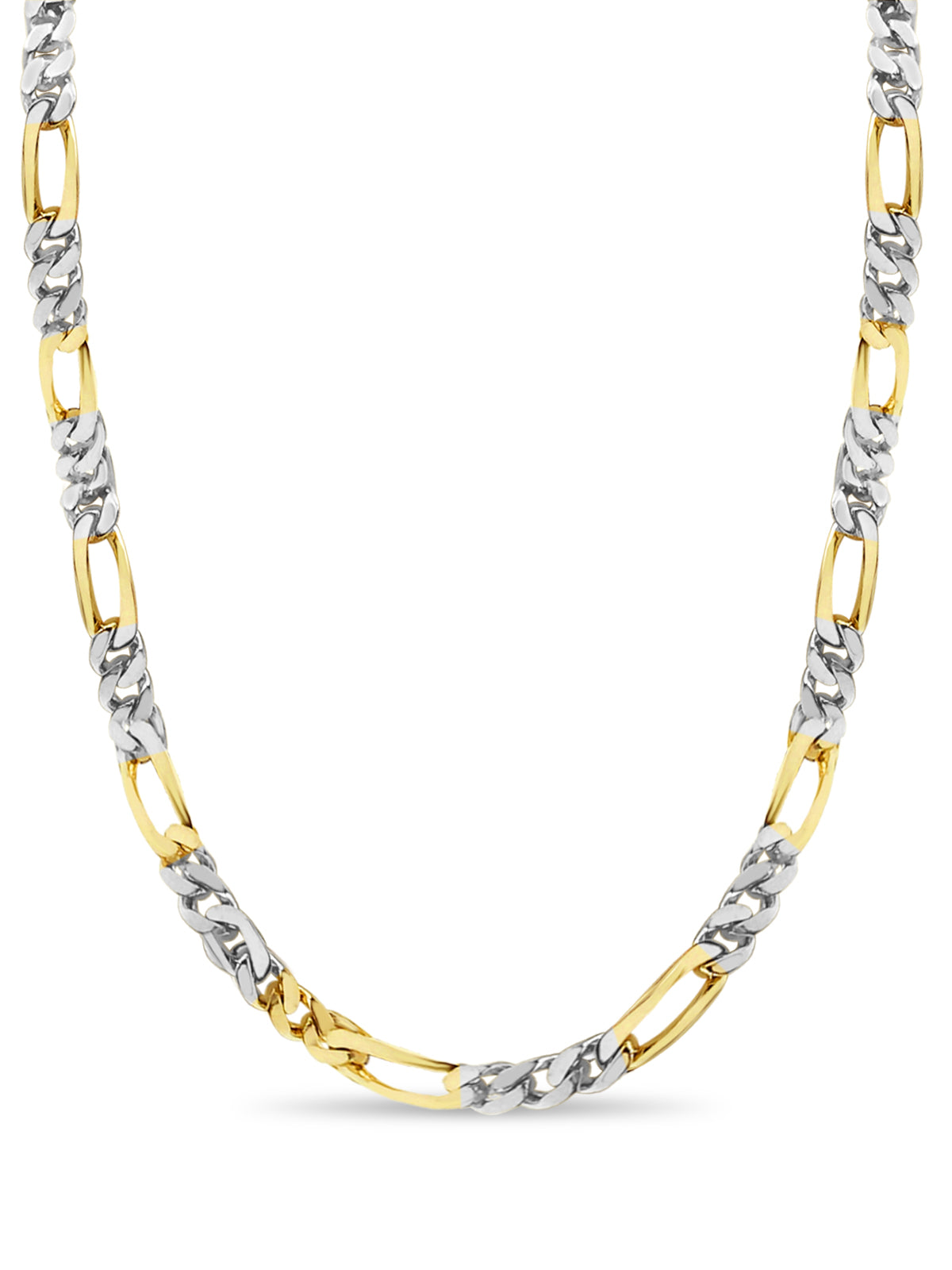Title: Figaro Solid White/Yellow/Rose Gold Handmade Necklace, 7mm, 16-30 Inch