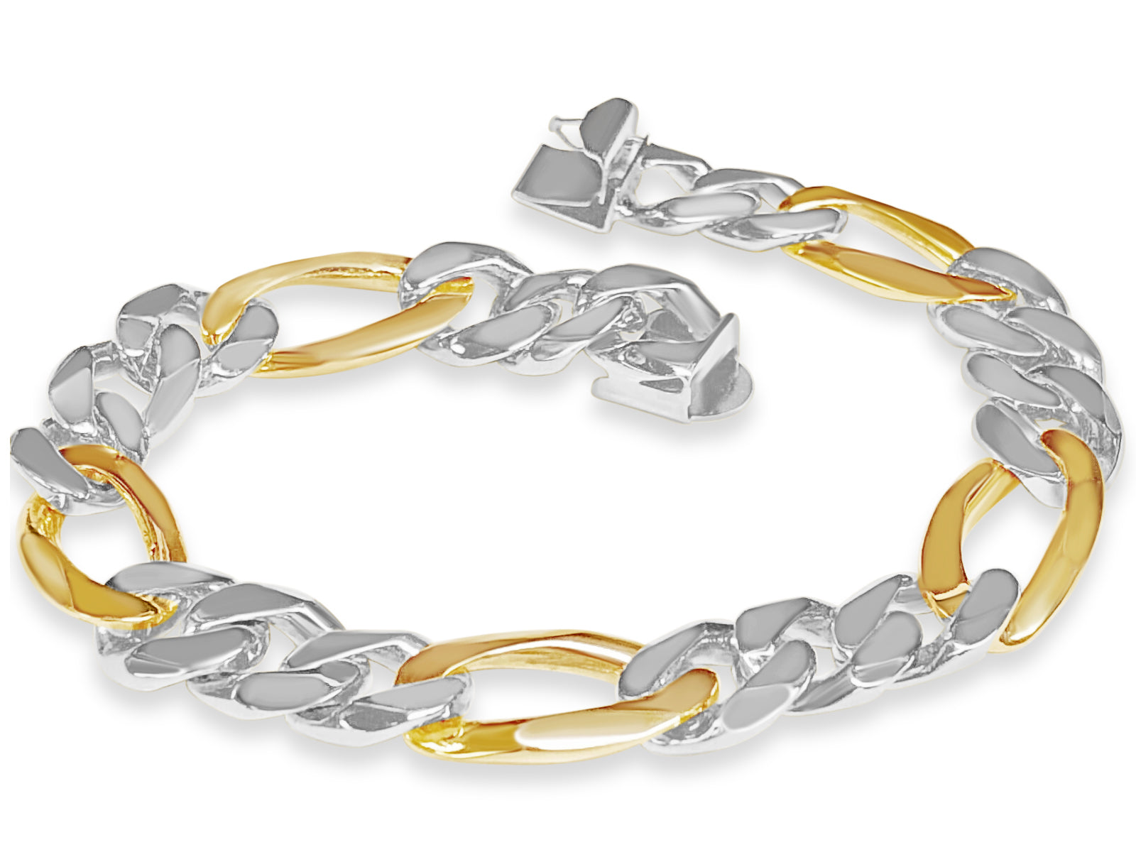 Title: Figaro Solid White/Yellow/Rose Gold Handmade Bracelet, 12mm, 6.5-10 Inch