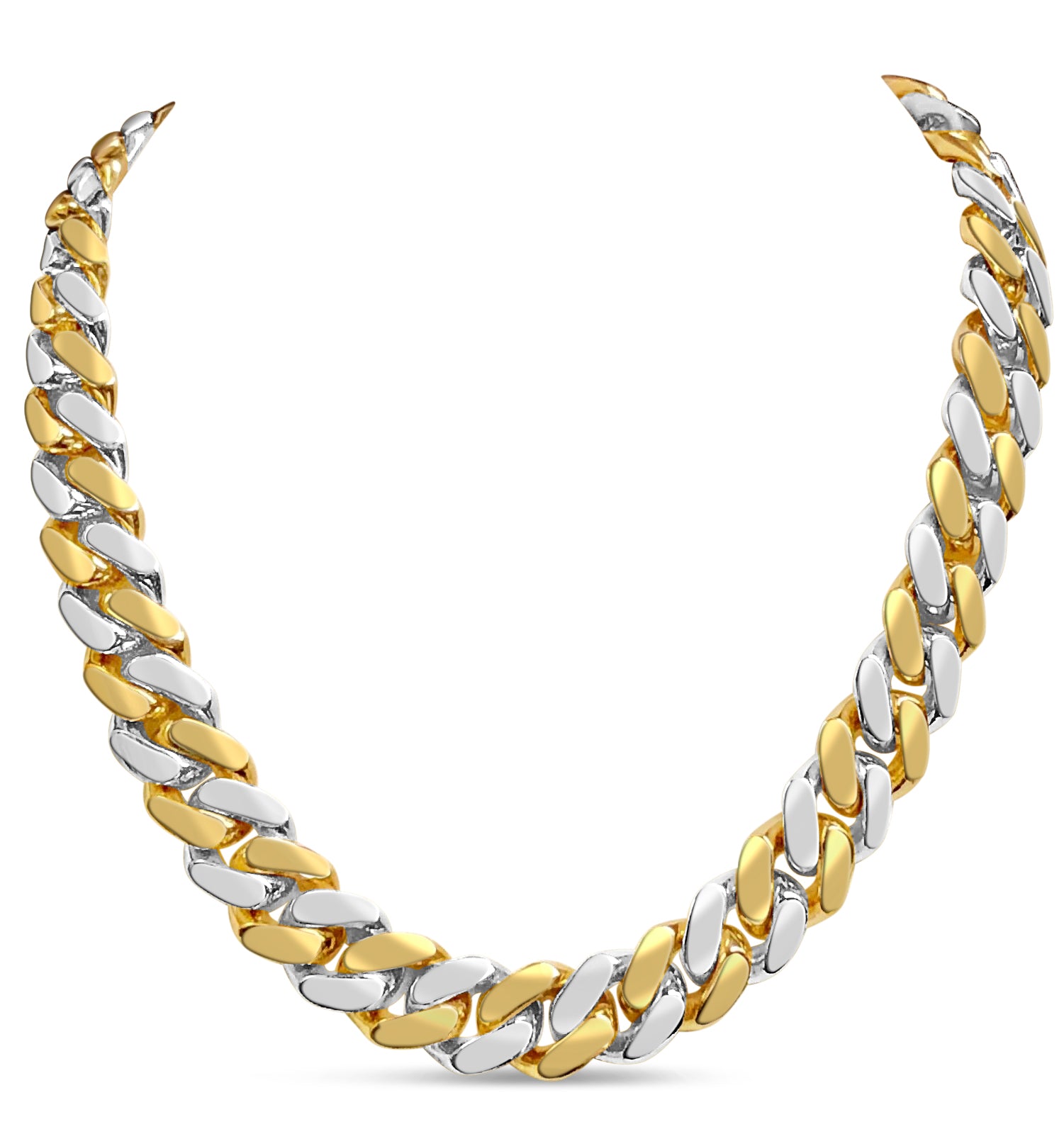 Title: Miami Cuban Solid White/Yellow/Rose Gold Handmade Necklace, 16mm, 16-30 Inch
