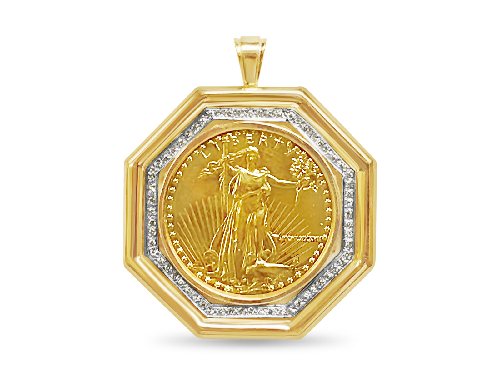 Title: Fancy Solid White/Yellow/Rose Gold Handmade Coin Pendant,