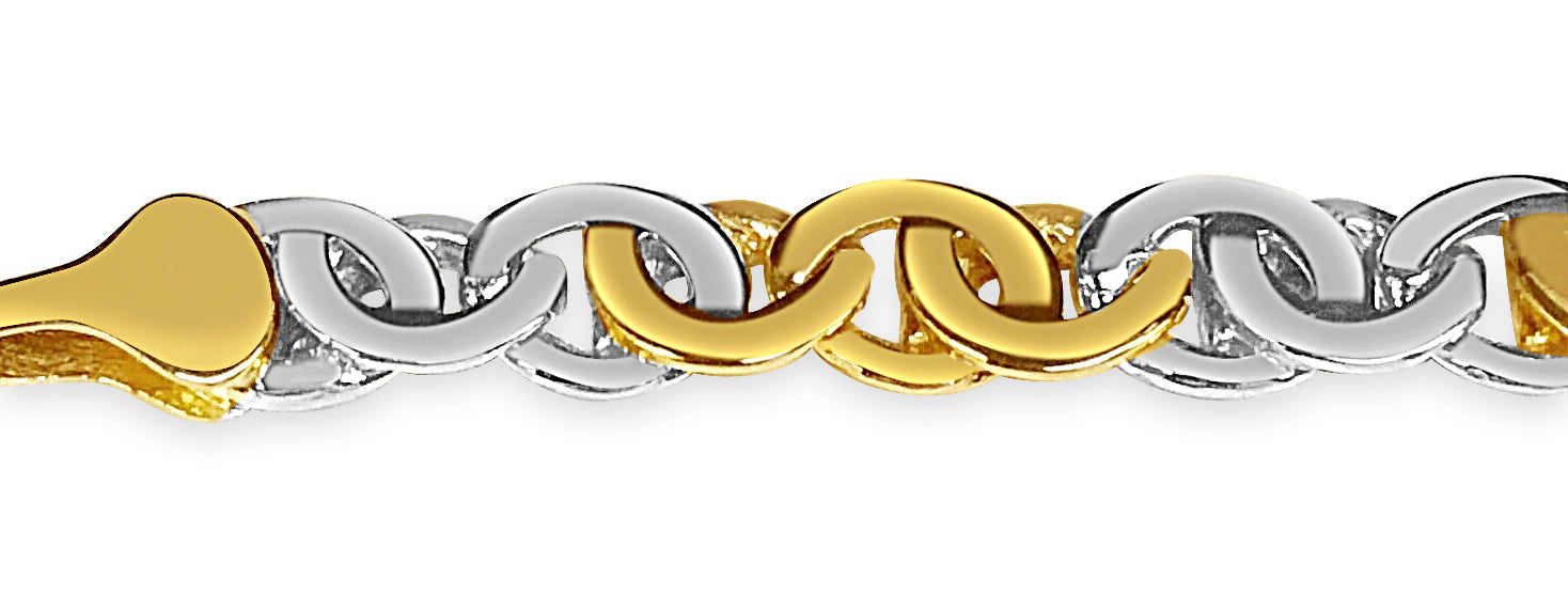 Crafted with precision by our seasoned artisans, each link of this bracelet tells a story of heritage and tradition. Available in 10K, 14K, or 18K gold, with a dimension of 8mm, it strikes the perfect balance between boldness and refinement. Choose from multiple gold colors such as; Yellow, White, Rose, Two-Tone, or Tri-Color to suit your style.