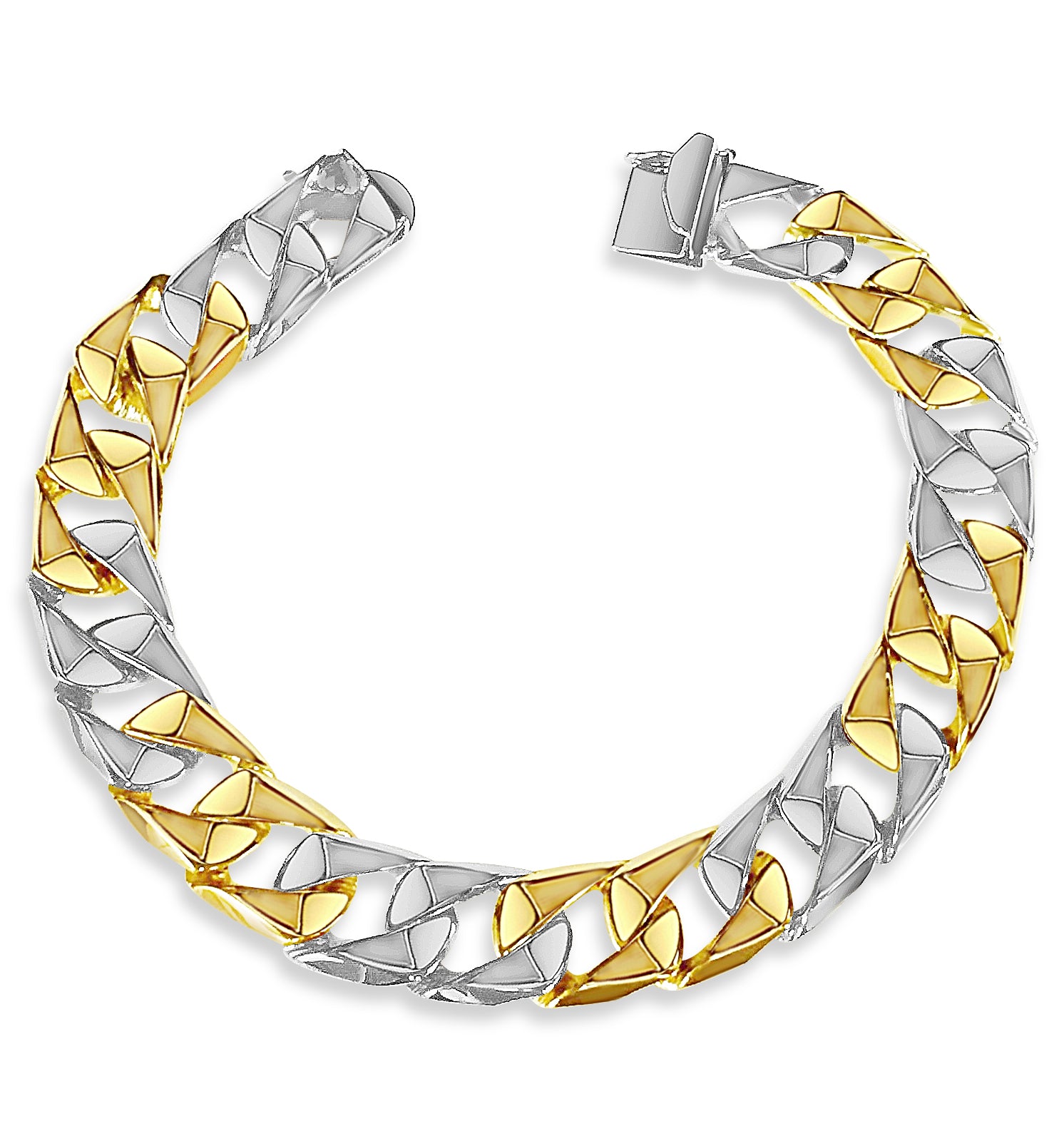 Crafted with precision by our seasoned artisans, each link of this bracelet tells a story of heritage and tradition. Available in 10K, 14K, or 18K gold, with a dimension of 14mm, it strikes the perfect balance between boldness and refinement. Choose from multiple gold colors such as; Yellow, White, Rose, Two-Tone, or Tri-Color to suit your style.