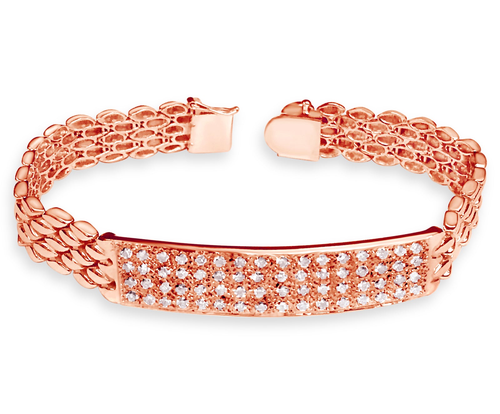 Title: Diamond ID Panther Solid White/Yellow/Rose Gold Handmade Bracelet, 12mm, 6.5-10 Inch