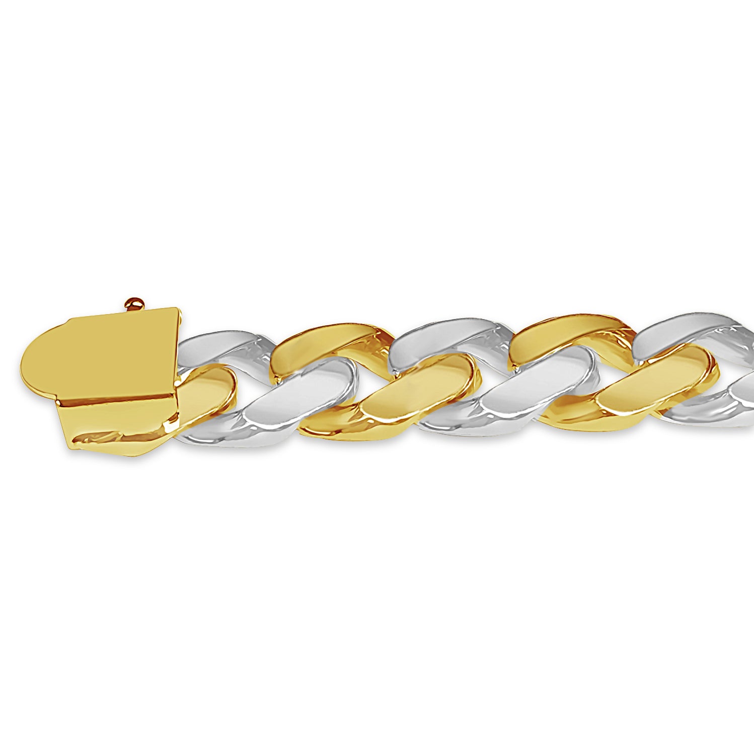 Crafted with precision by our seasoned artisans, each link of this bracelet tells a story of heritage and tradition. Available in 10K, 14K, or 18K gold, with a dimension of 10mm, it strikes the perfect balance between boldness and refinement. Choose from multiple gold colors such as; Yellow, White, Rose, Two-Tone, or Tri-Color to suit your style.