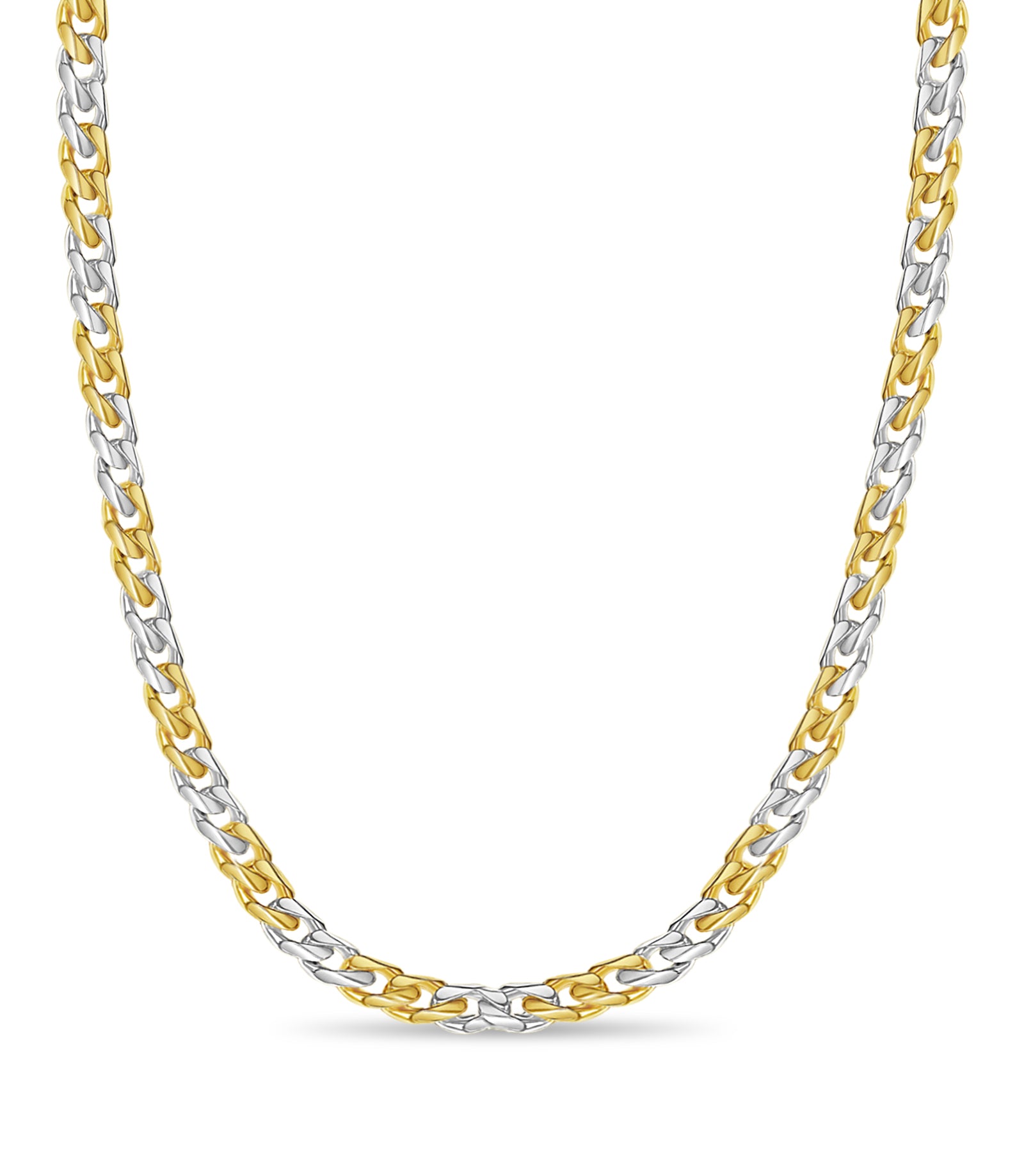 Title: Curb Solid White/Yellow/Rose Gold Handmade Necklace, 13mm, 16-30 Inch