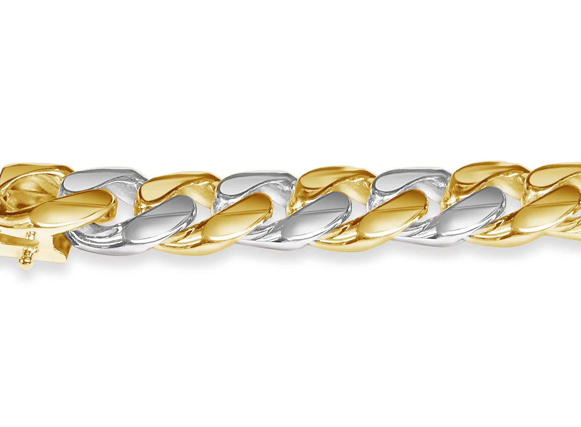 Crafted with precision by our seasoned artisans, each link of this bracelet tells a story of heritage and tradition. Available in 10K, 14K, or 18K gold, with a dimension of 13mm, it strikes the perfect balance between boldness and refinement. Choose from multiple gold colors such as; Yellow, White, Rose, Two-Tone, or Tri-Color to suit your style.
