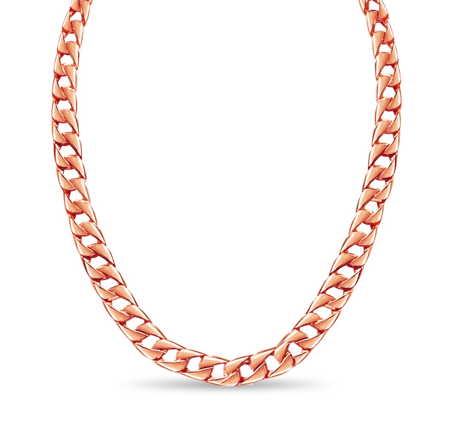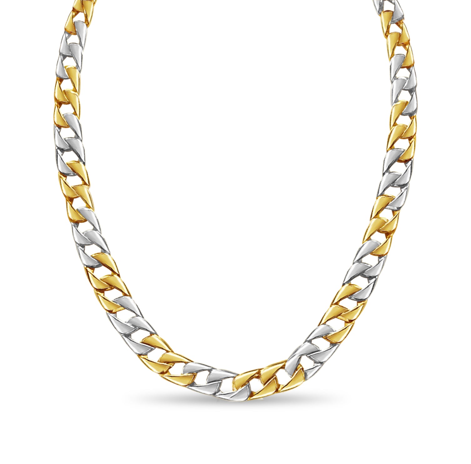 Title: Curb Solid White/Yellow/Rose Gold Handmade Necklace, 9mm, 16-30 Inch