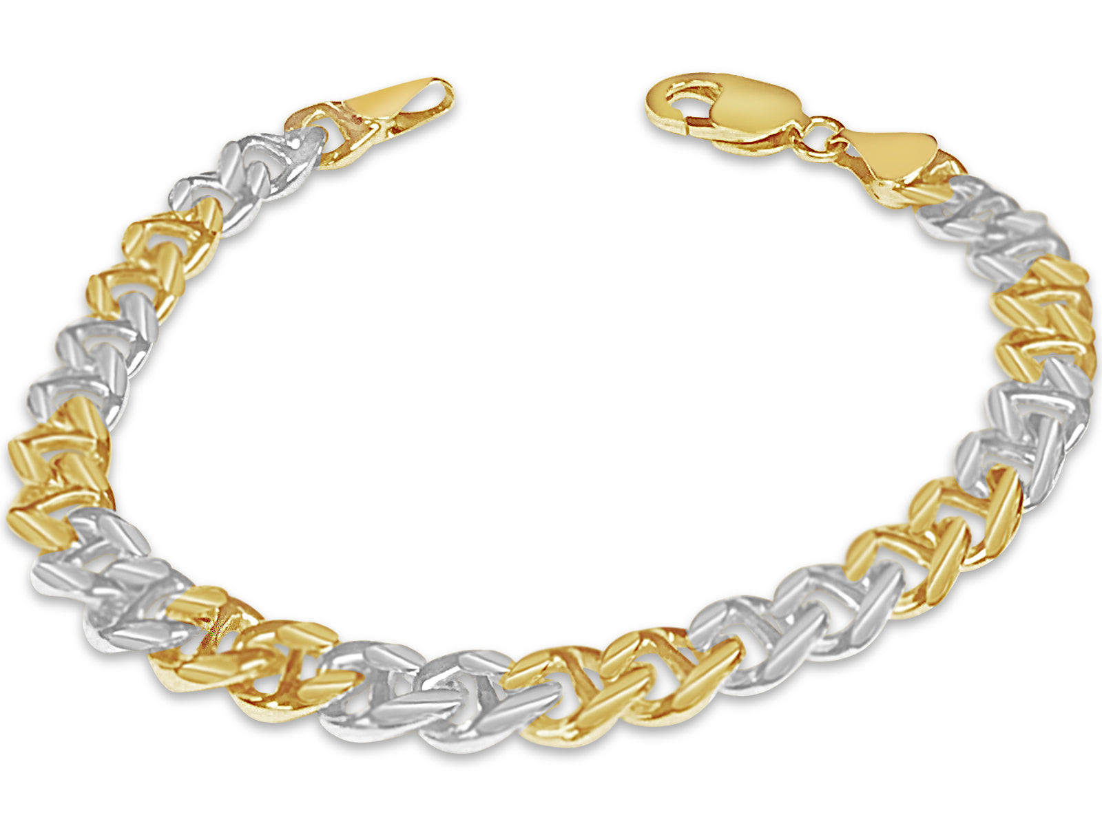 Title: Mariner Solid White/Yellow/Rose Gold Handmade Bracelet, 9mm, 6.5-10 Inch